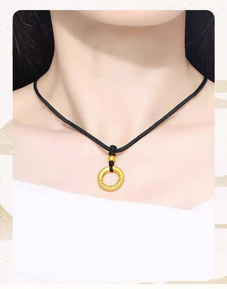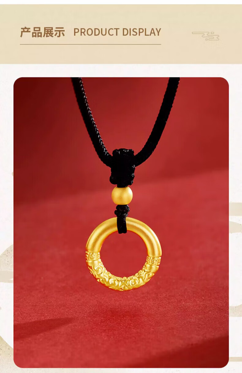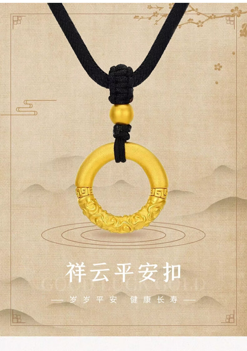 Lao Fengxiang Ping An Buckle Gold Pendant Pure Gold Auspicious Cloud Gold Hoop Spell Gold Necklace Pendant Birthday Gift for Girlfriend, Wife, Husband Today/Next Day Delivery* Ping An Buckle Pure Gold Necklace Approximately 1.5g Black Rope