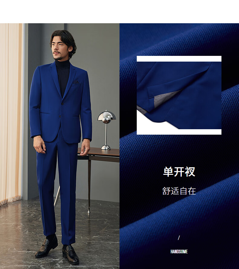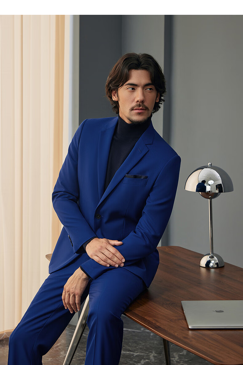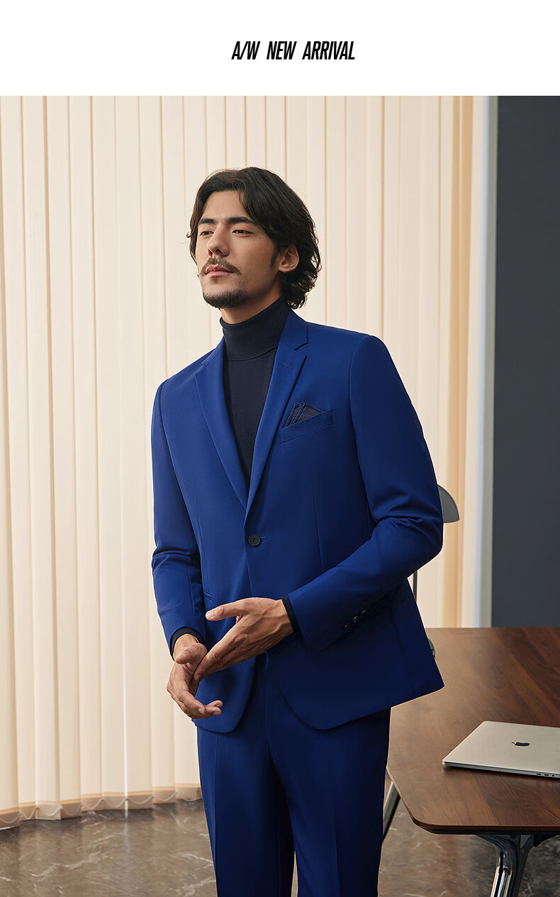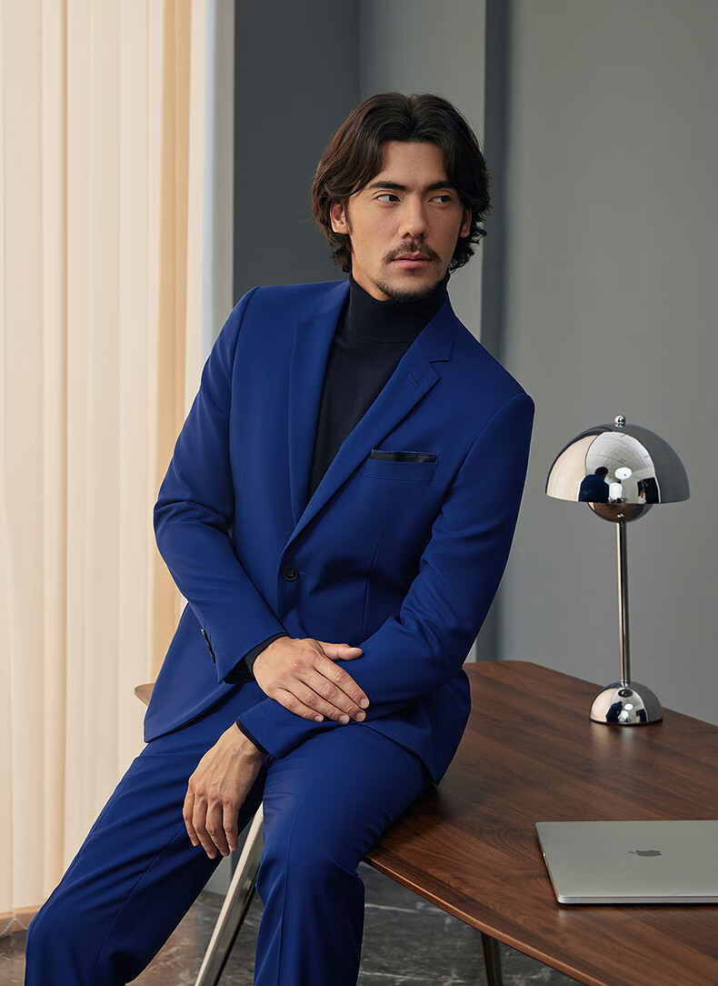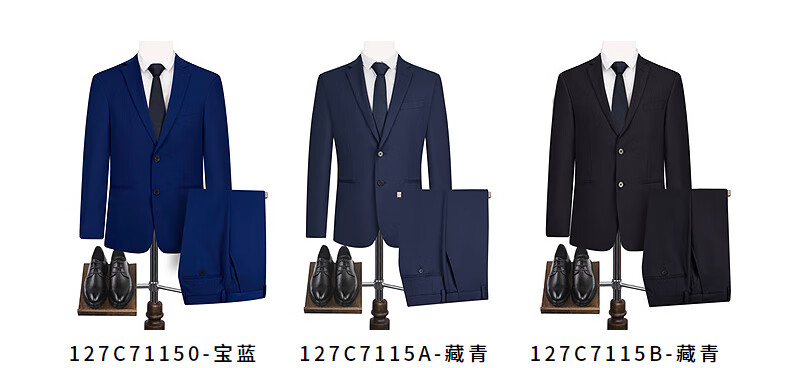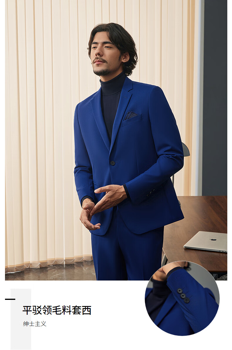 Qipai Wool Suit Men's Suit Spring and Summer New Style Wool Business Suit Dress 127C7115B-Navy 52 (185)