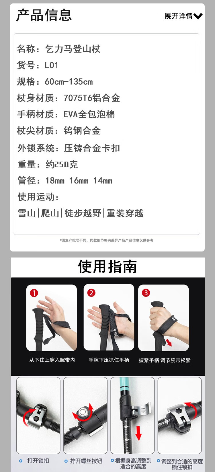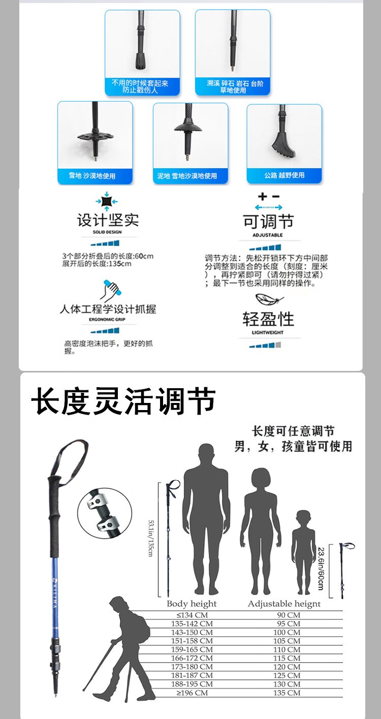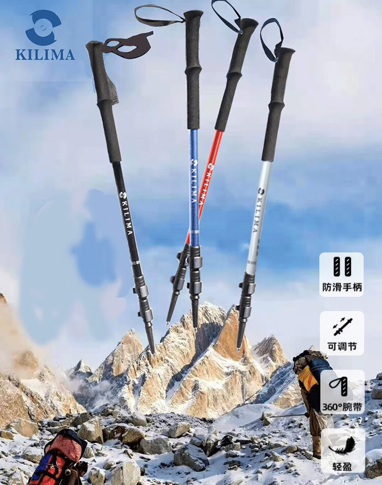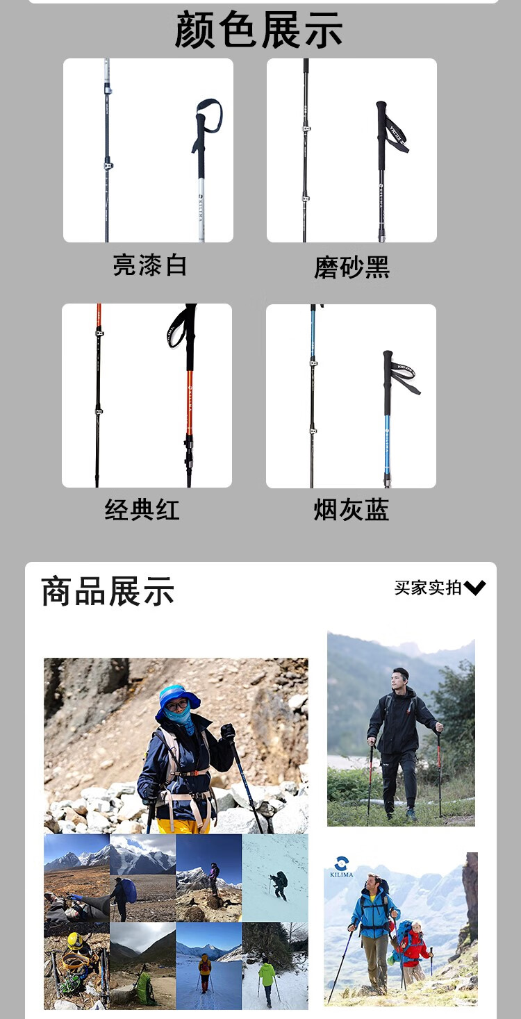 KILIMA (KILIMA) Kilima heavy-duty aluminum alloy telescopic trekking pole with metal buckle heavy-duty outdoor mountaineering and hiking self-defense, two white poles