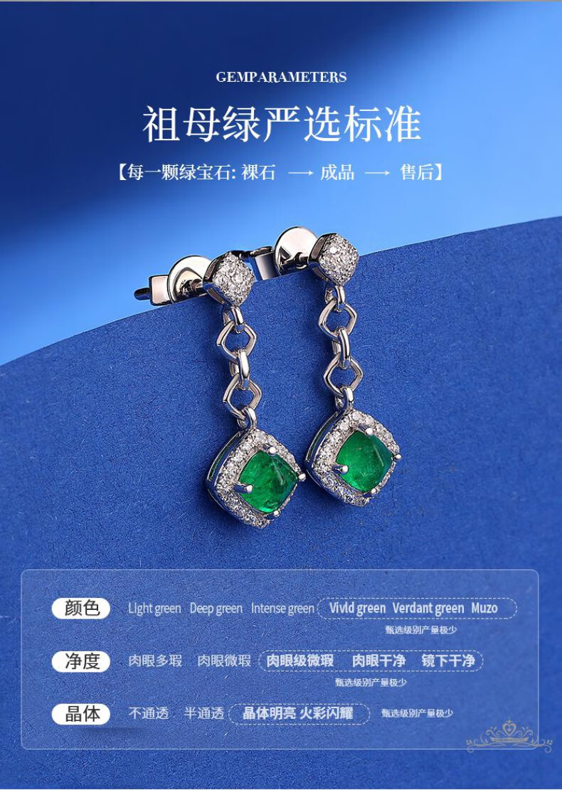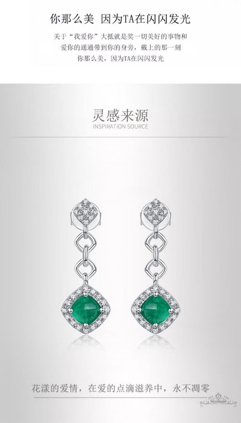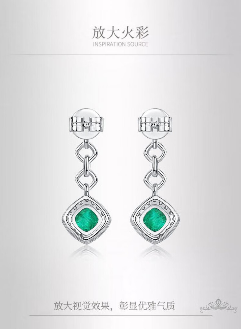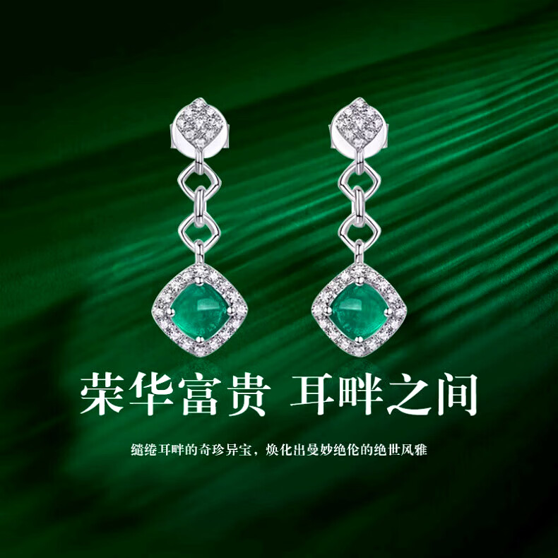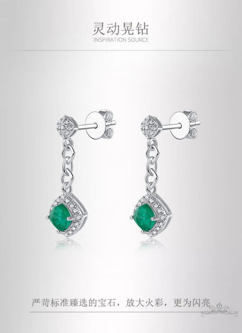 Haikai earrings for women, emerald gemstone earrings, luxury jewelry, Valentine's Day, birthday gift for wife, girlfriend, emerald gemstone earrings (0.61 carat, diamond 14 points)