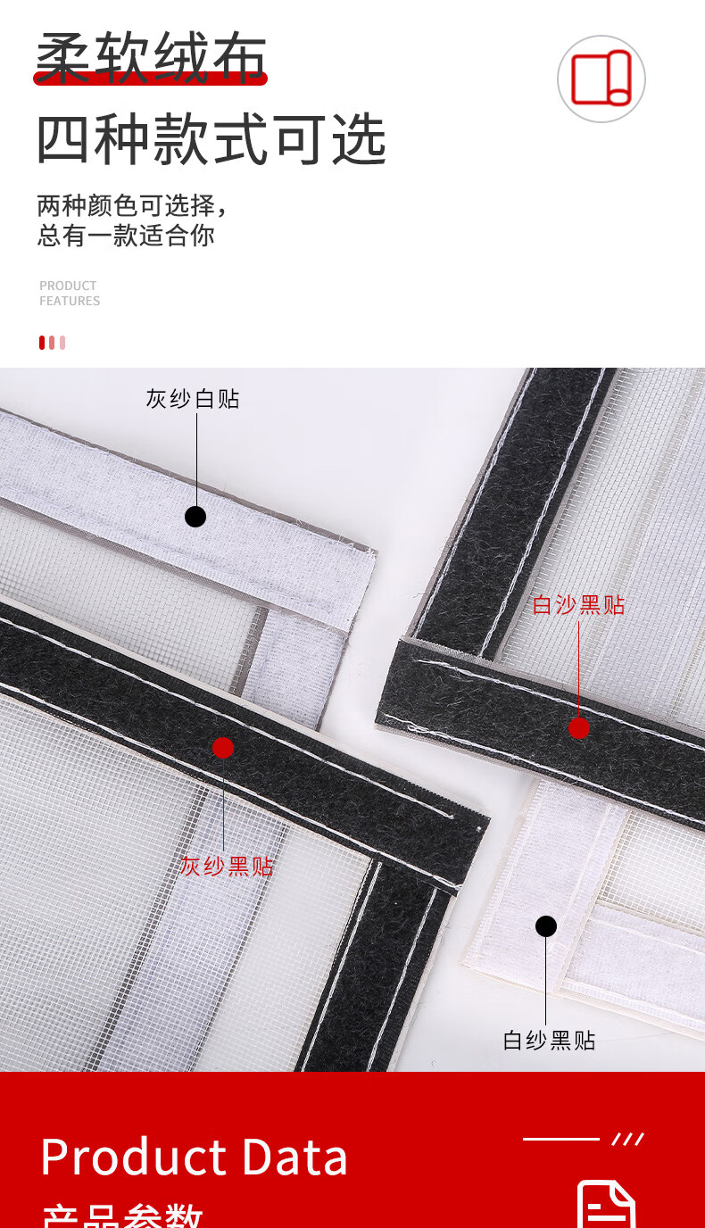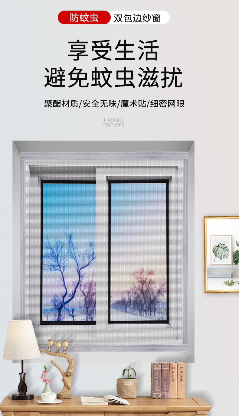 Factory wholesale self-adhesive simple anti-mosquito invisible screen without punching, encrypted window screen with Velcro 140*150cm Velcro style gray gauze and black stickers