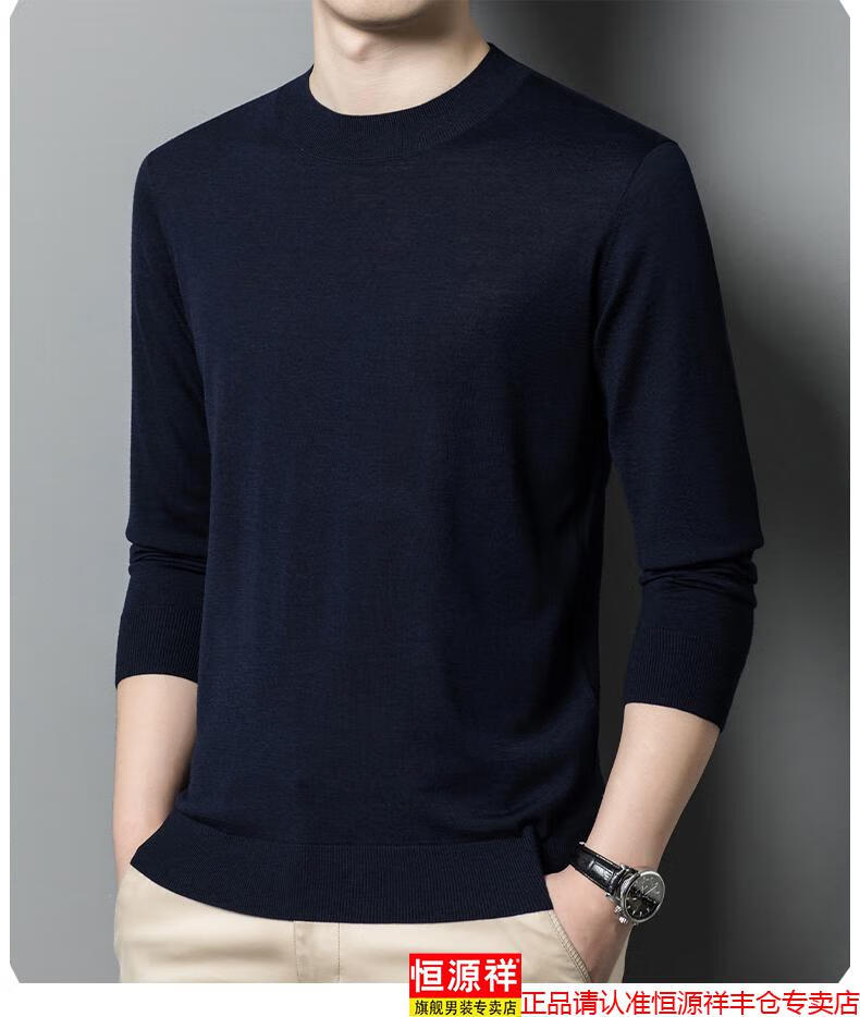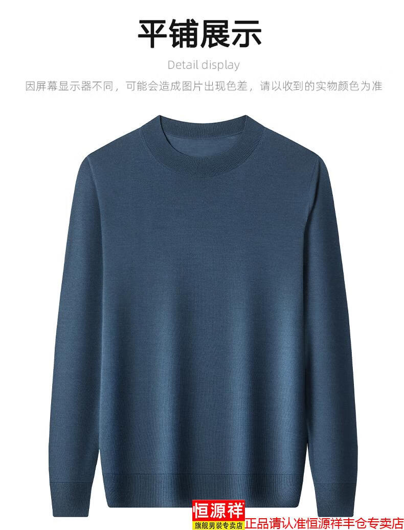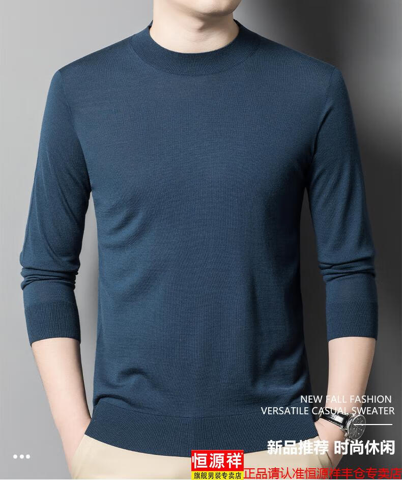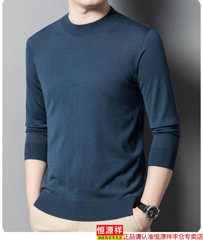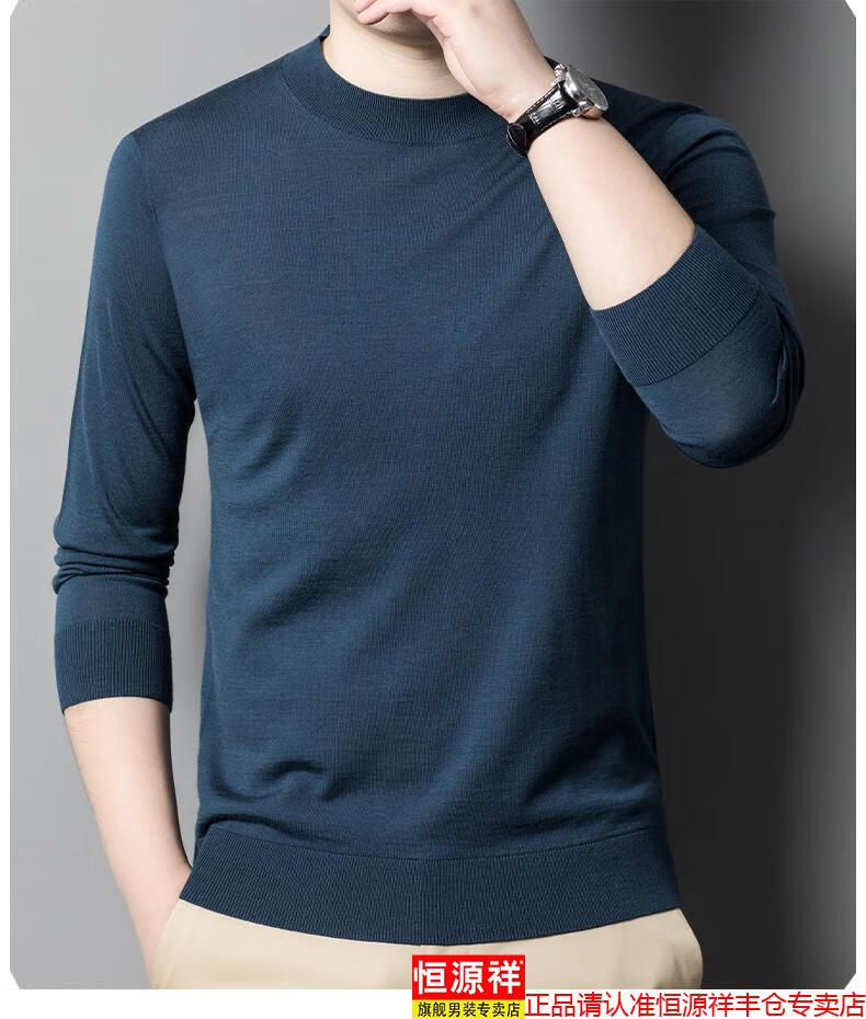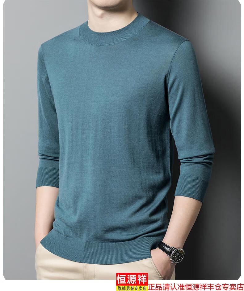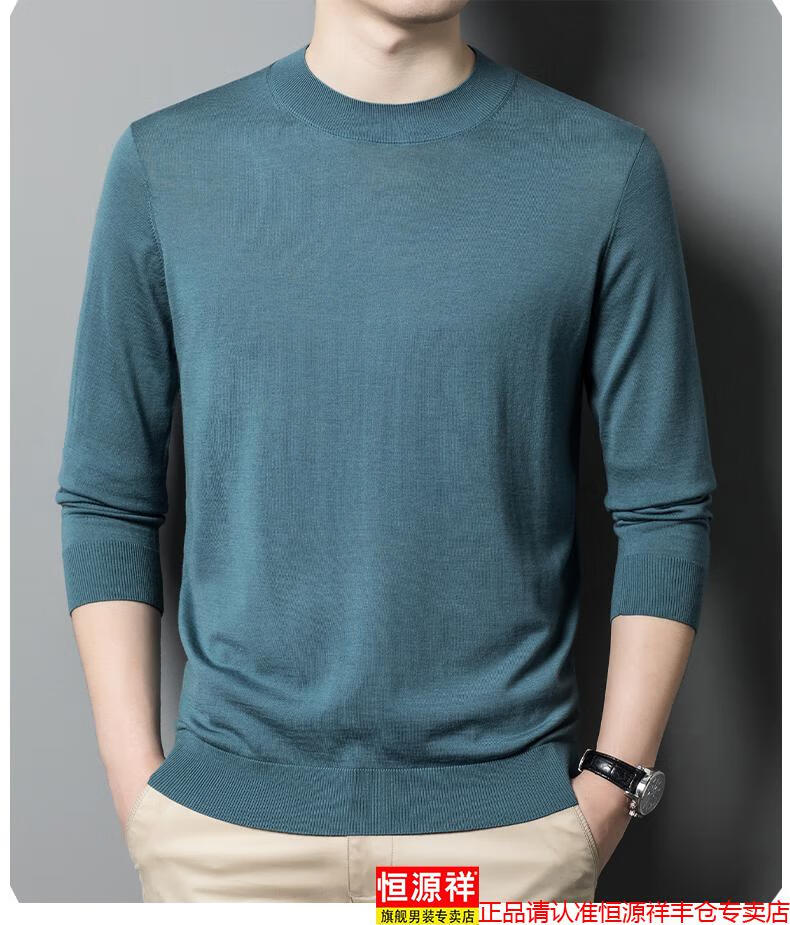 Hengyuanxiang light luxury high-end worsted ultra-fine thin cashmere sweater men's half-high collar woolen sweater solid color sweater versatile new product 22001 half-high collar foggy blue 170 size recommended 120-140Jin Jin is equal to 0.5 kg