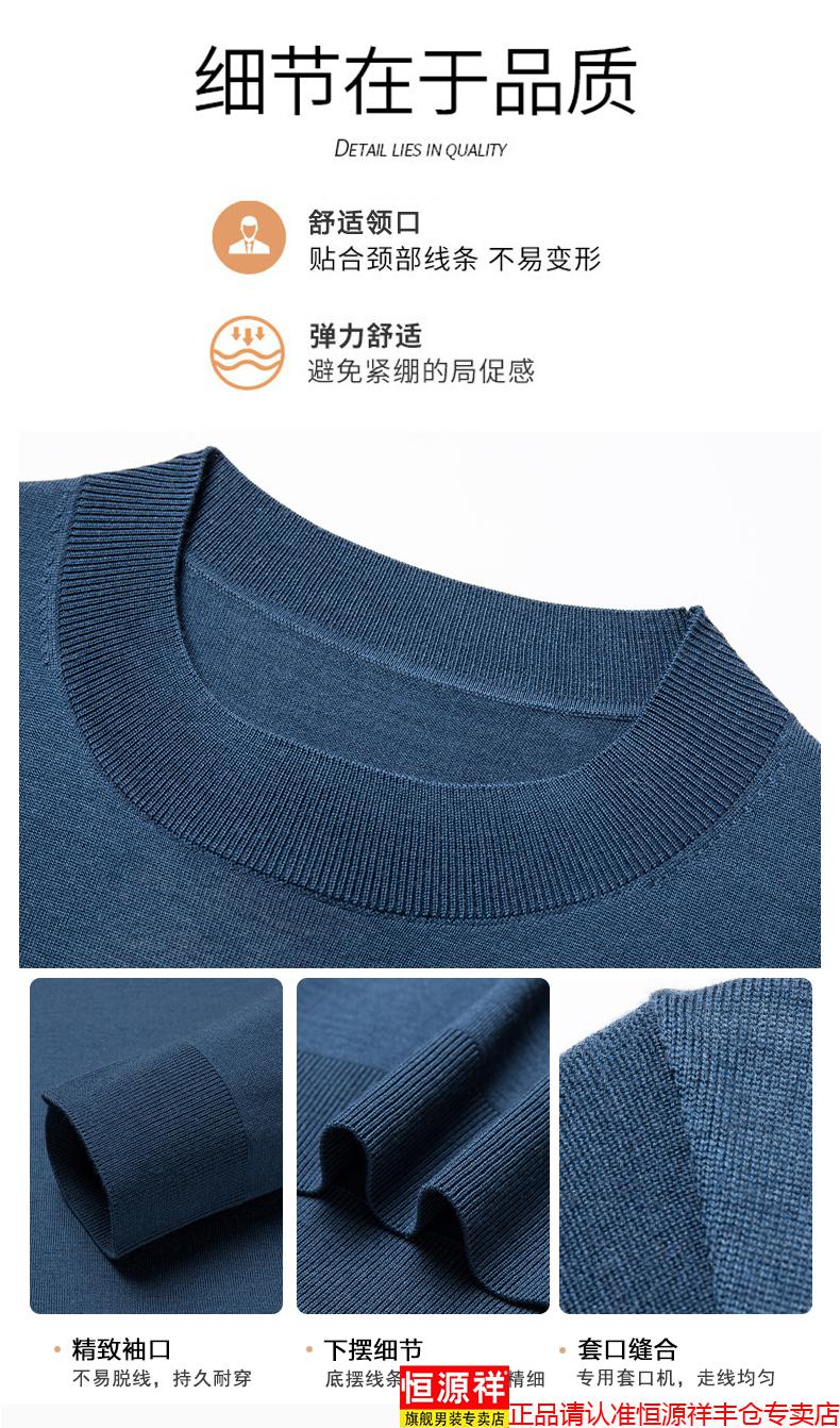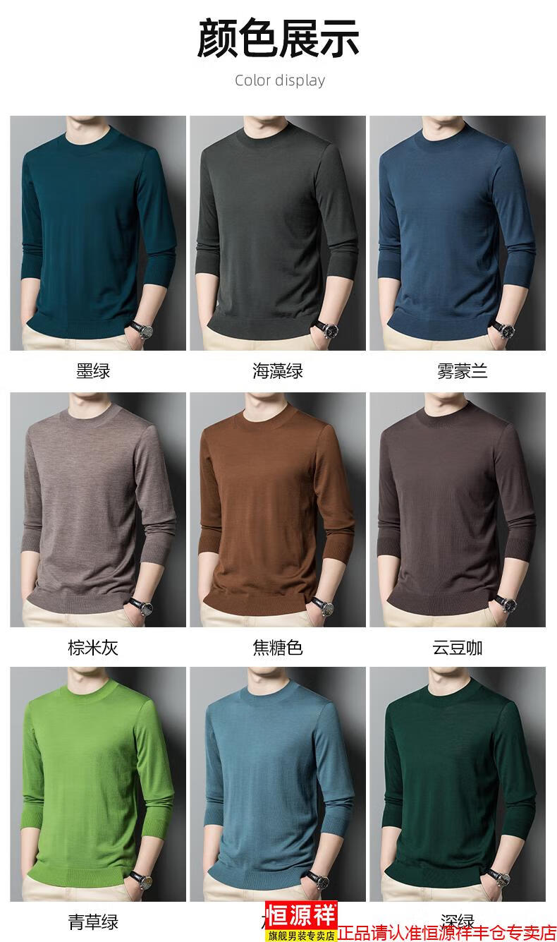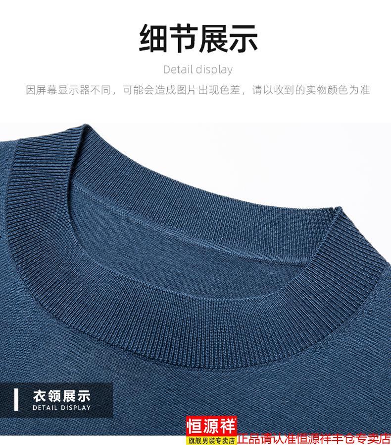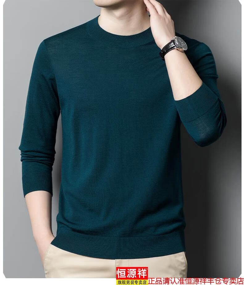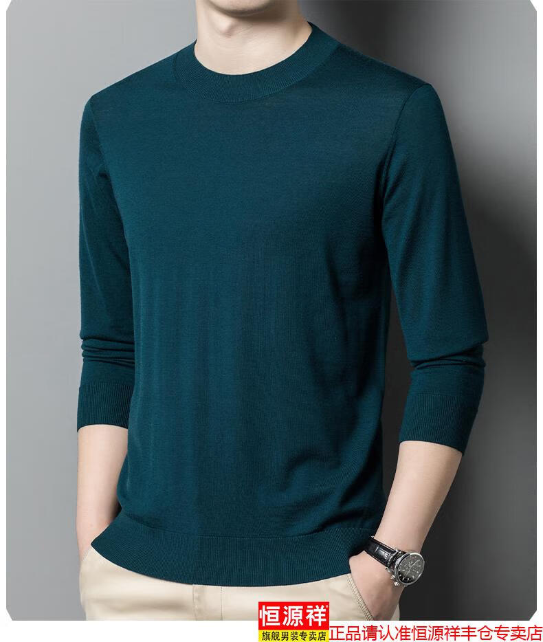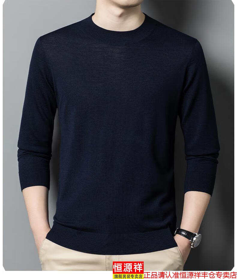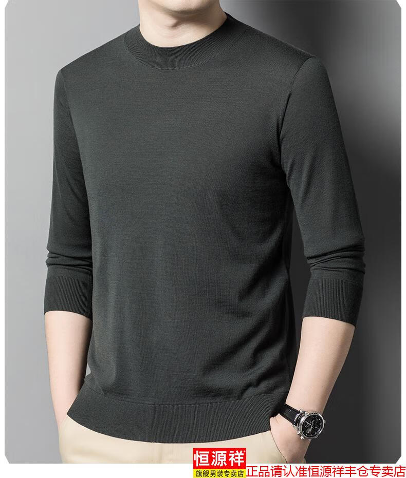 Hengyuanxiang light luxury high-end worsted ultra-fine thin cashmere sweater men's half-high collar woolen sweater solid color sweater versatile new product 22001 half-high collar foggy blue 170 size recommended 120-140Jin Jin is equal to 0.5 kg