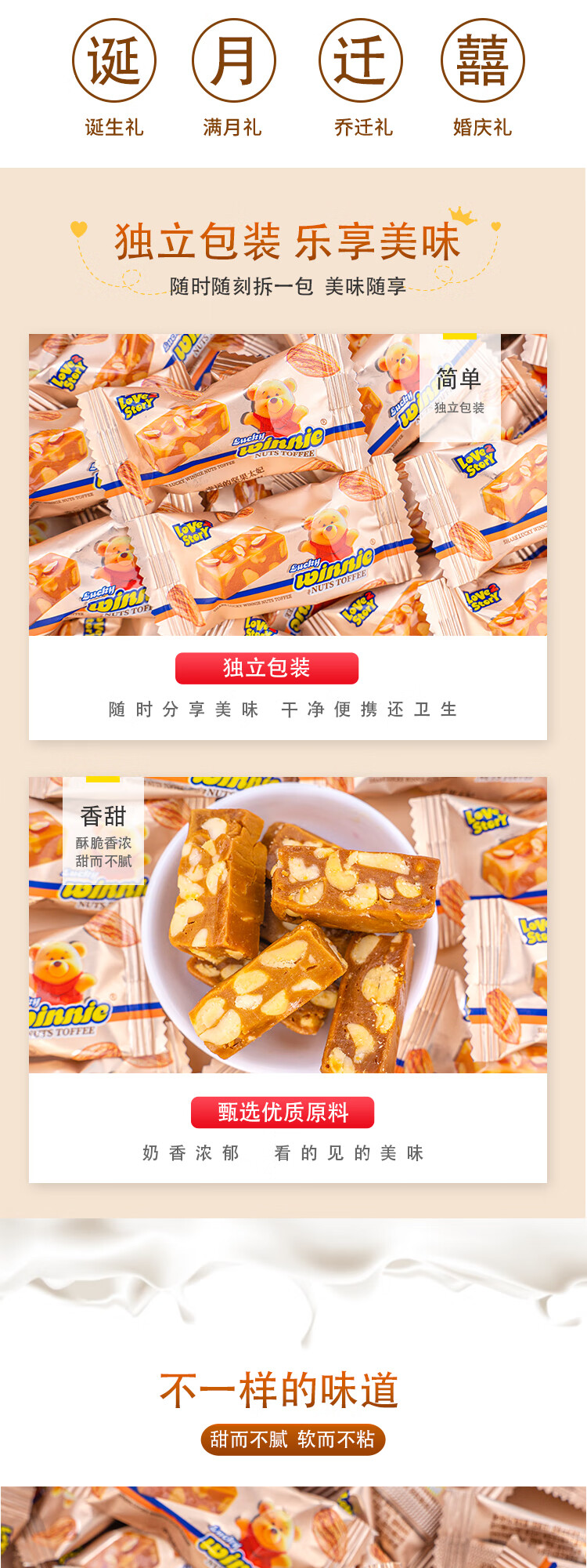 Natsume's friends Lucky Winnie nut toffee crisp wedding candy bulk casual snacks Lucky nut toffee 400g
