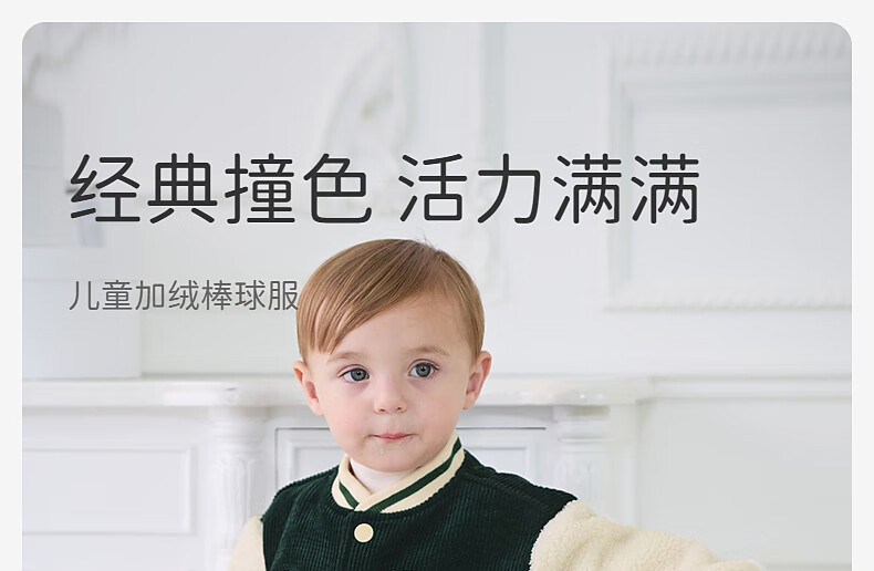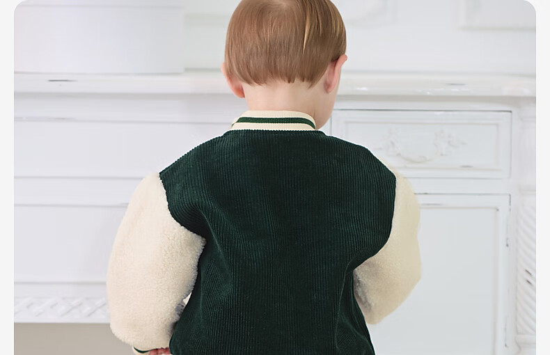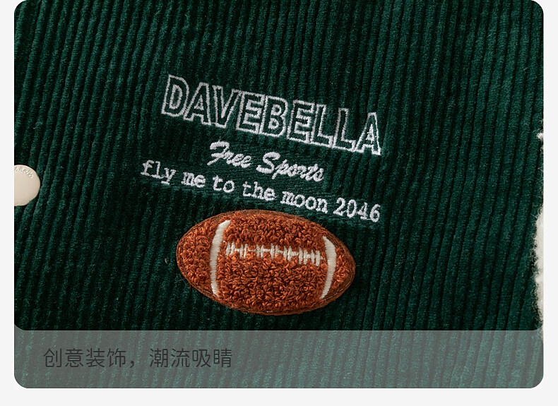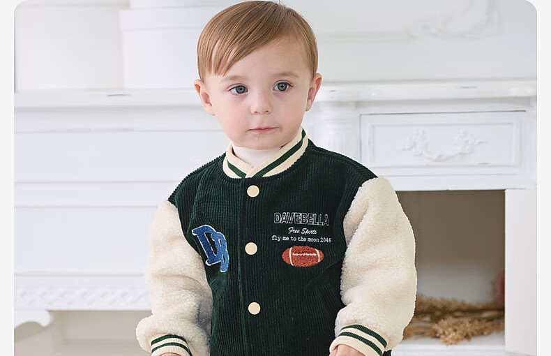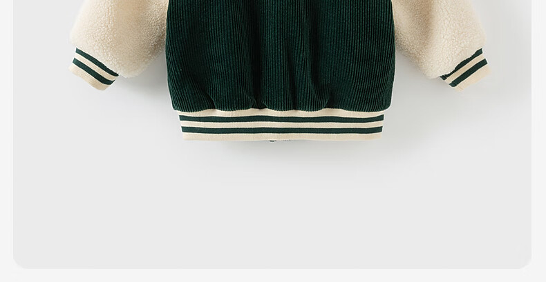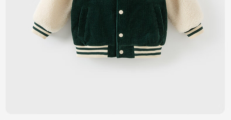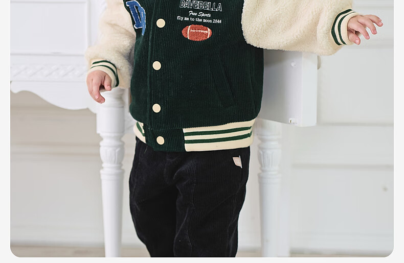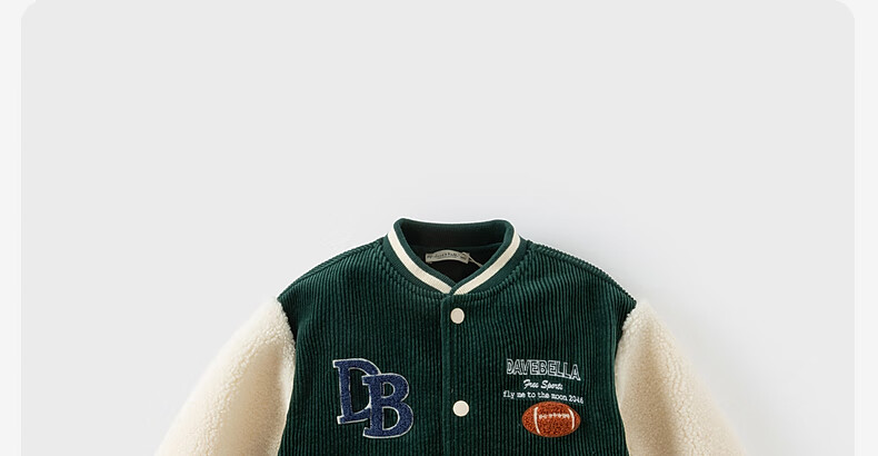 DAVE&BELLA children's clothing plus velvet children's baseball uniforms children's winter coats baby clothes warm children's tops boys' outerwear dark green in stock 100 cm (recommended height 90-100cm)