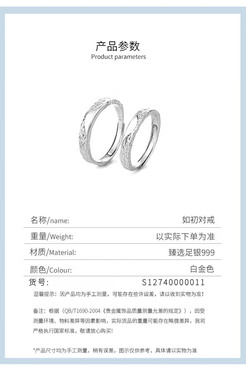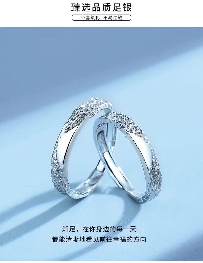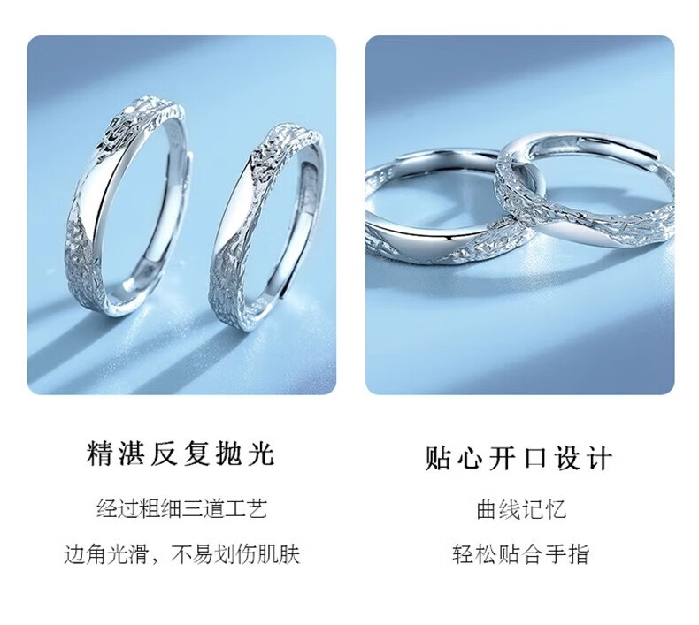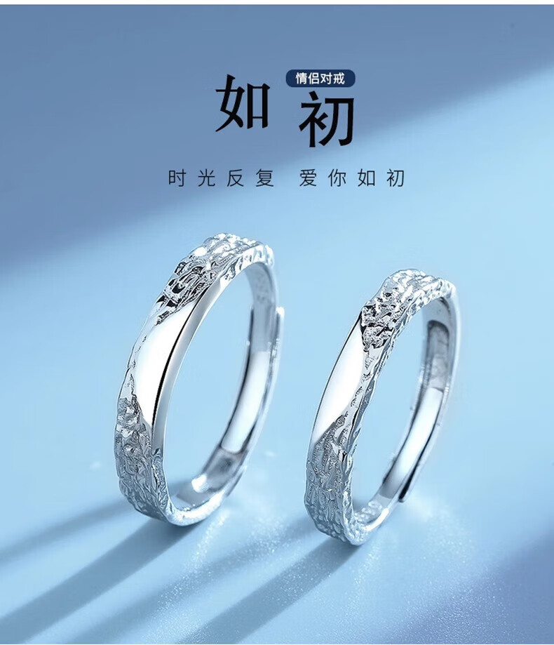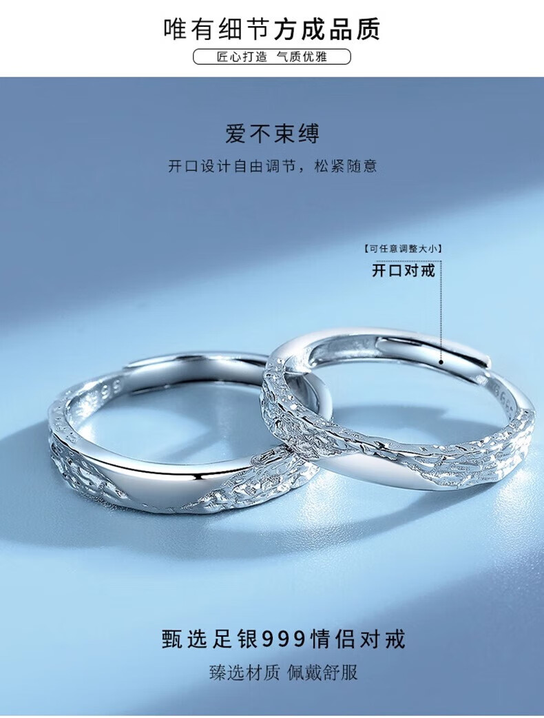 Lao Fengxiang sterling silver glacier couple ring for men and women, light luxury proposal ring, anniversary birthday gift for girlfriend and wife, today/tomorrow* pure silver - Seiko version* glacier couple ring, brand gift box