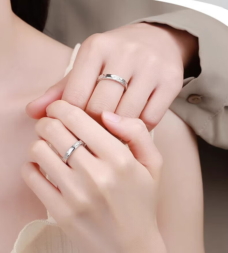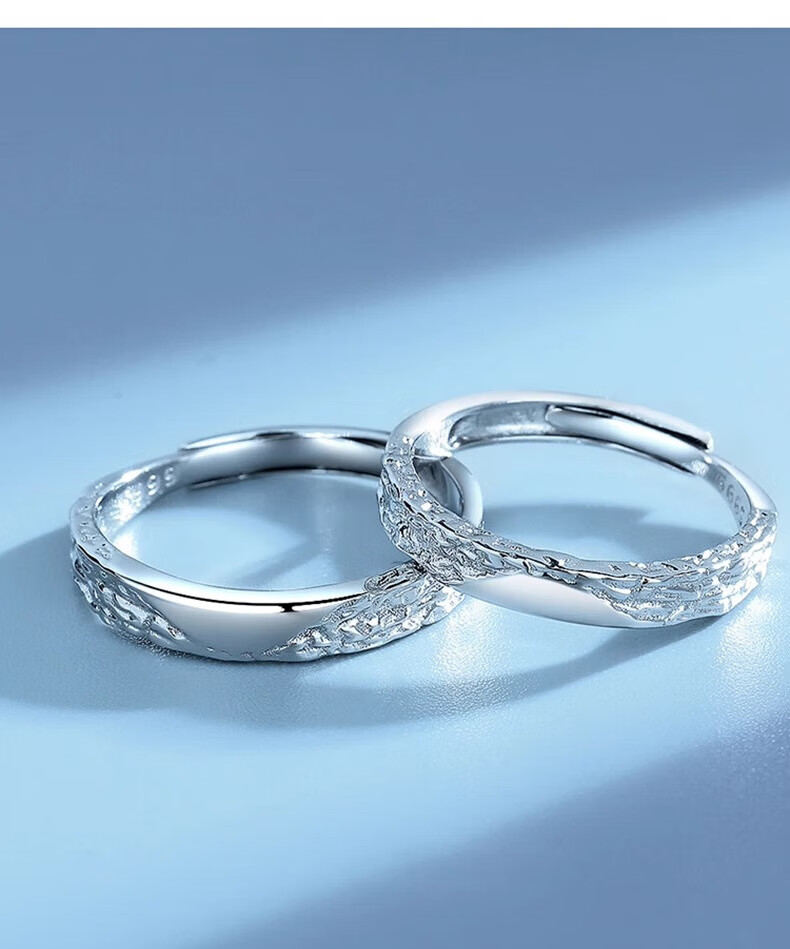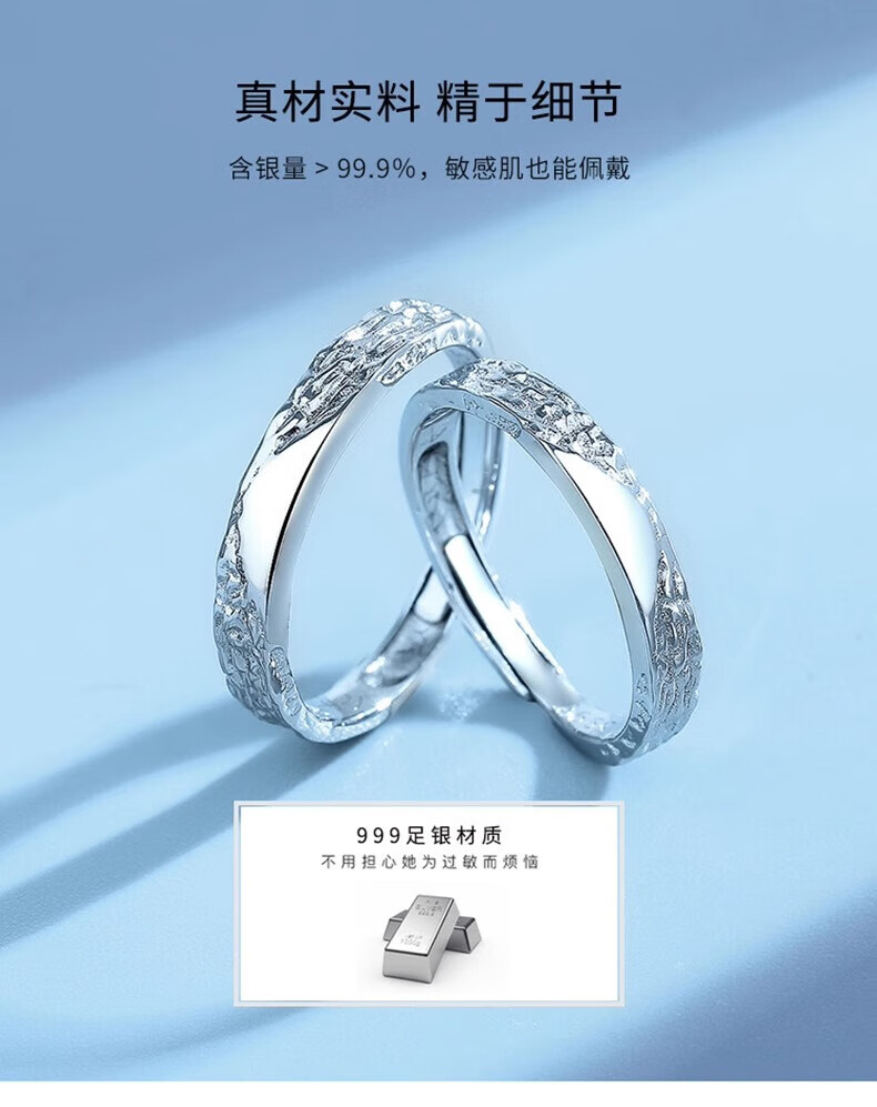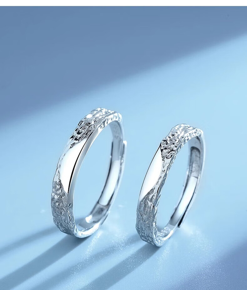 Lao Fengxiang sterling silver glacier couple ring for men and women, light luxury proposal ring, anniversary birthday gift for girlfriend and wife, today/tomorrow* pure silver - Seiko version* glacier couple ring, brand gift box