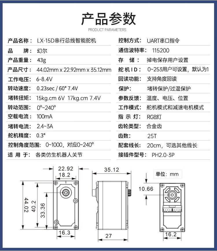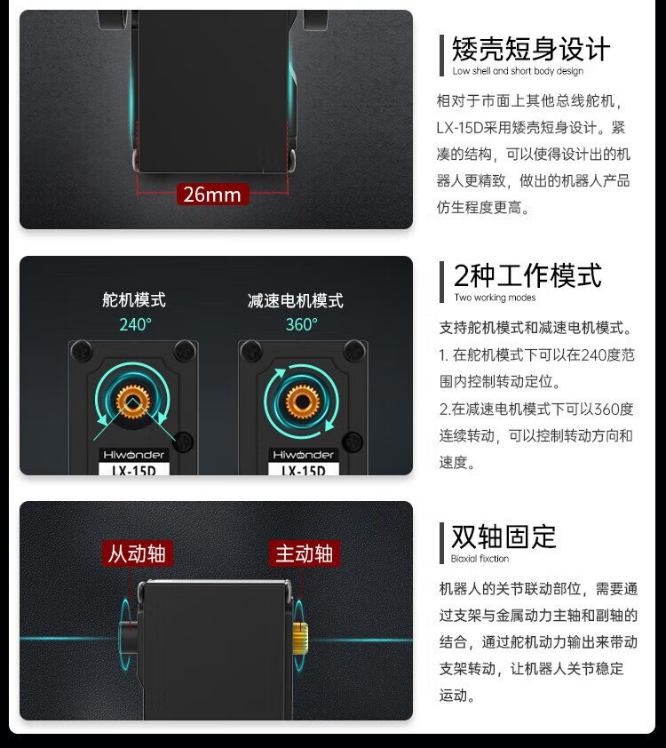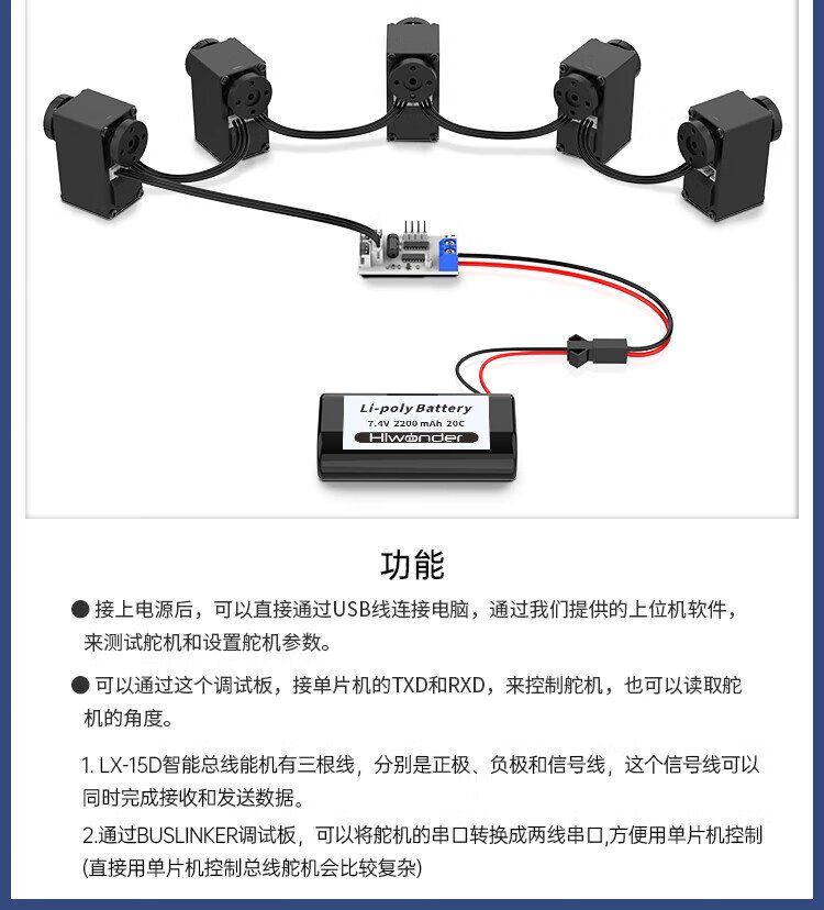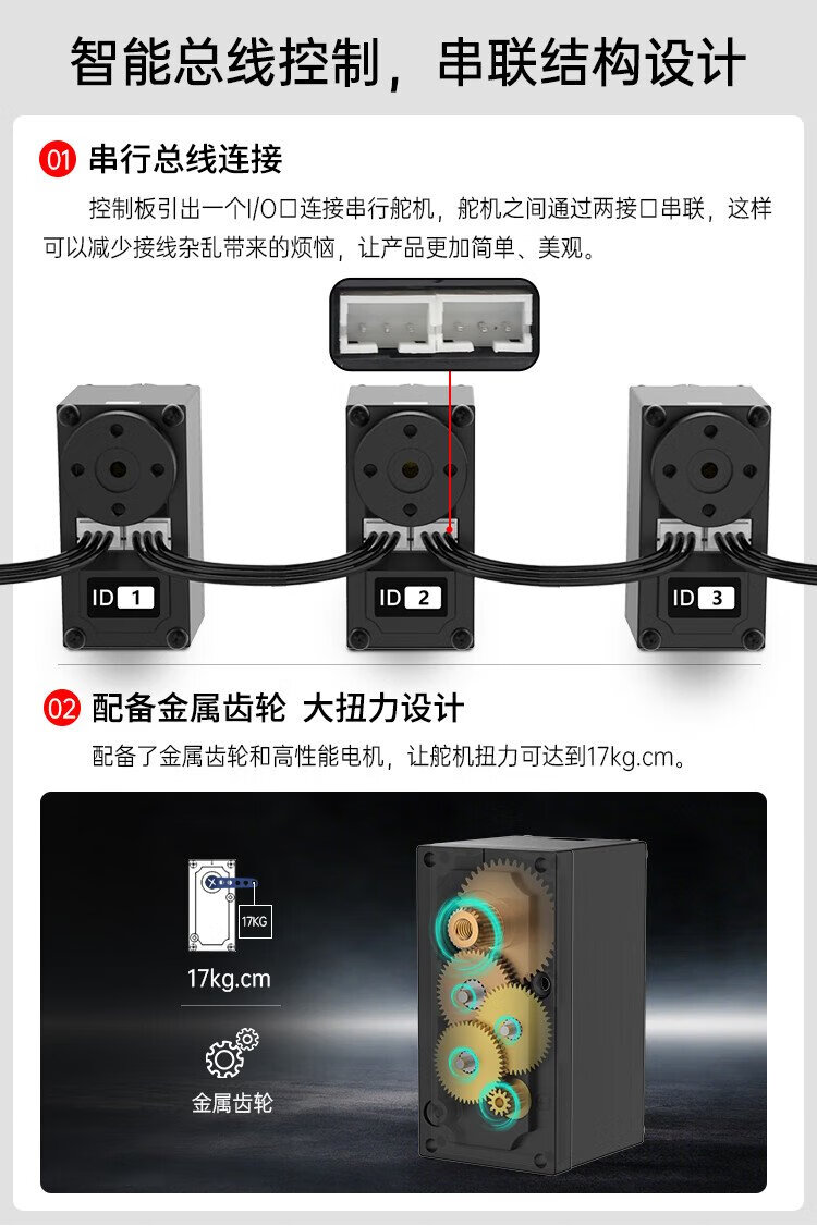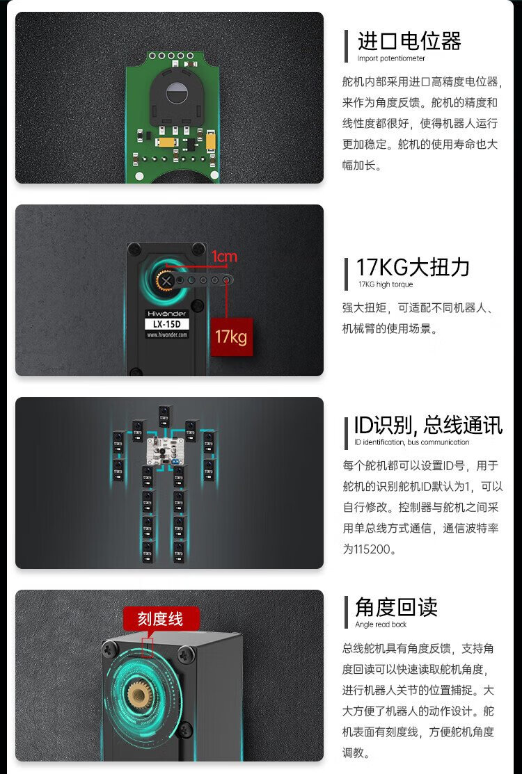 Huaner intelligent serial bus servo 17KG torque single axis high precision large torque with feedback metal gear LX-15D robot manipulator servo metal main steering wheel