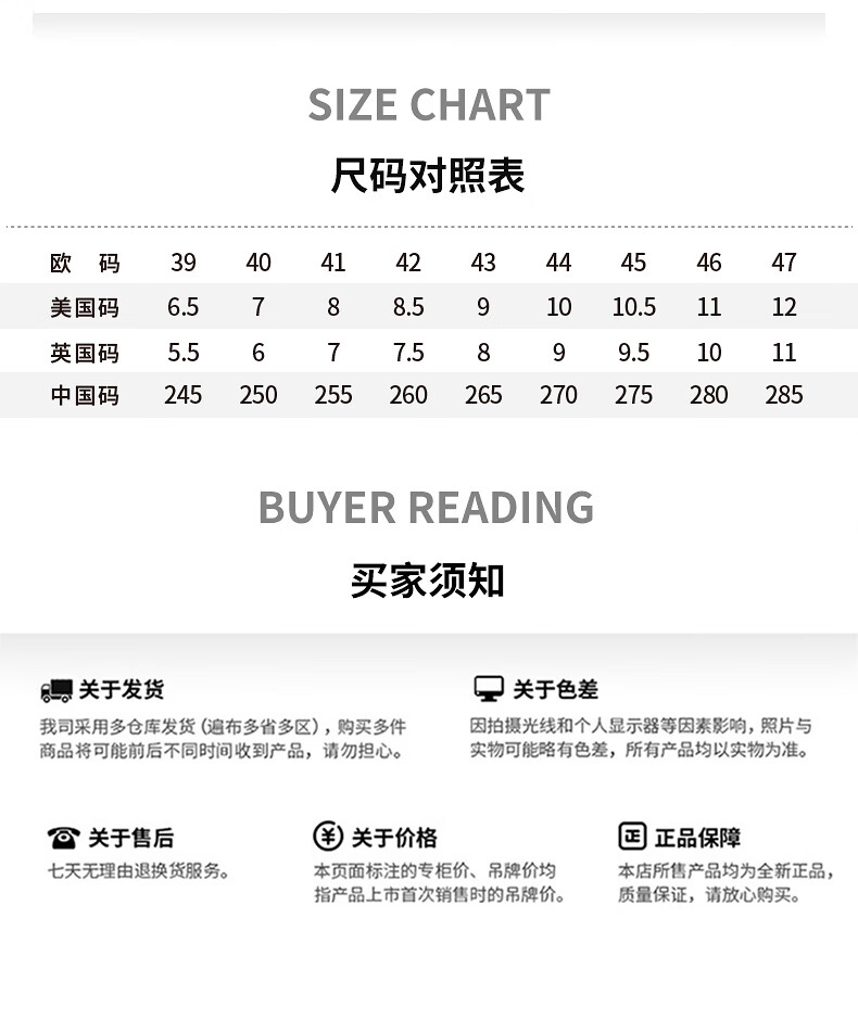 China (cm) 36 - 37 38 - 39 40 - 42 43 - 44 45 - 47