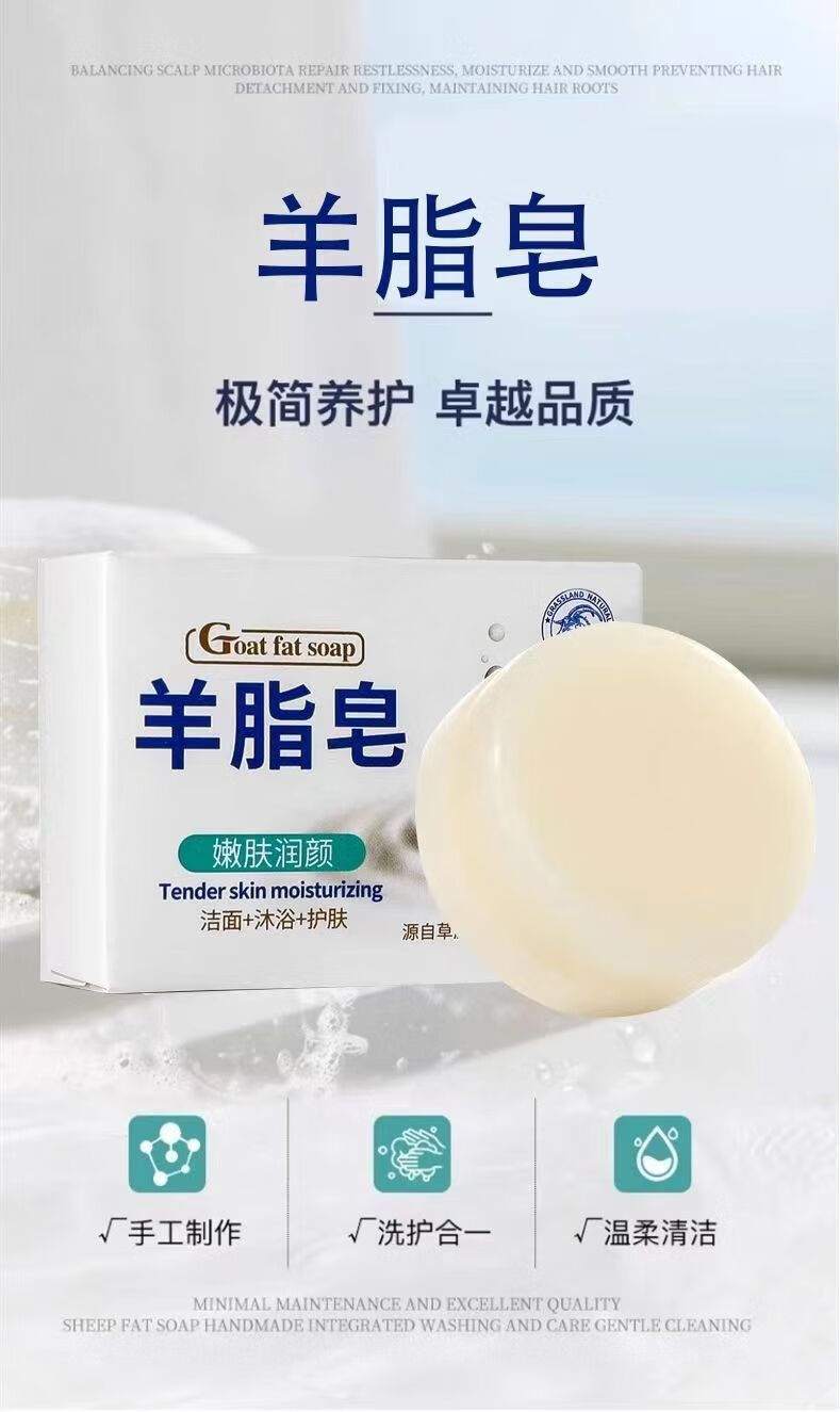 Mutton Fat Soap Soap Moisturizing Baotou Sheep Oil Additive-Free Soap 2-in-1 Moisturizing and Moisturizing Mutton Fat Soap 1 piece - Cleansing - Bath + Net