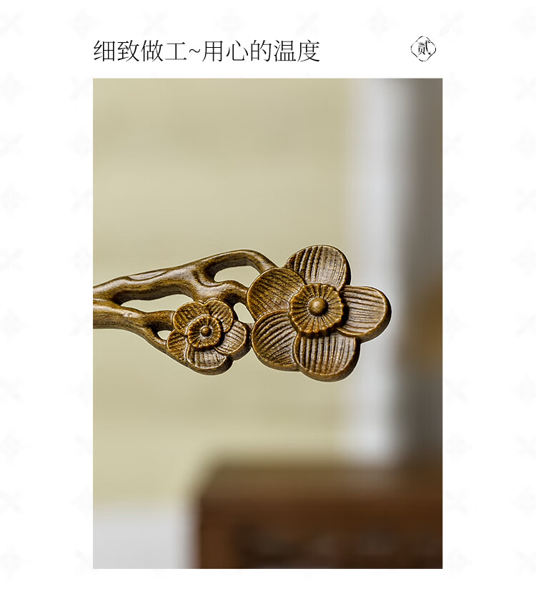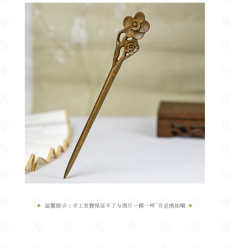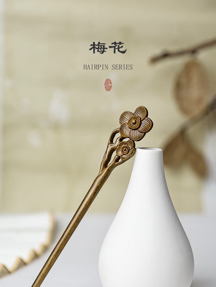Zhuishi Zhuishi sandalwood hairpin green sandalwood new Chinese style hairpin for girls daily hairstyle high-end Hanfu matching Mid-Autumn Festival gift green sandalwood hairpin plum blossom