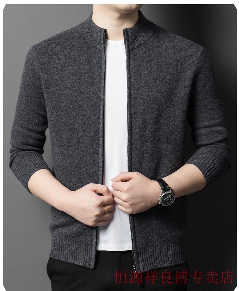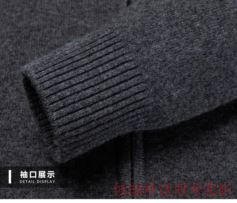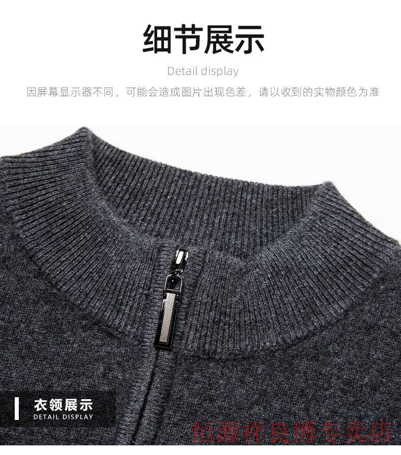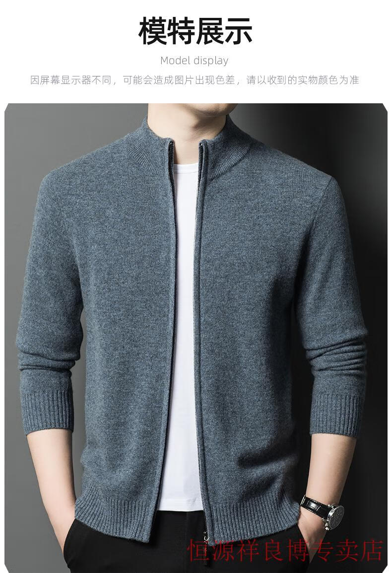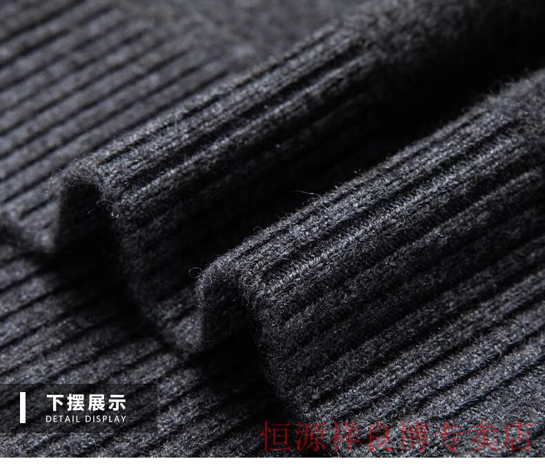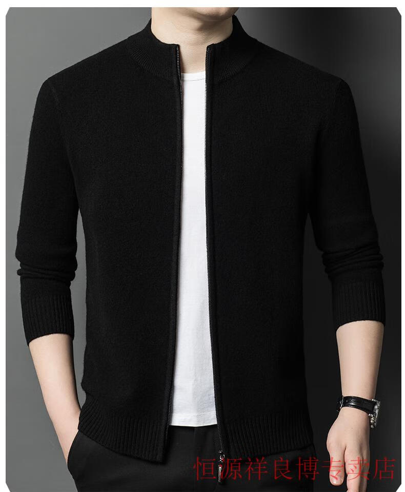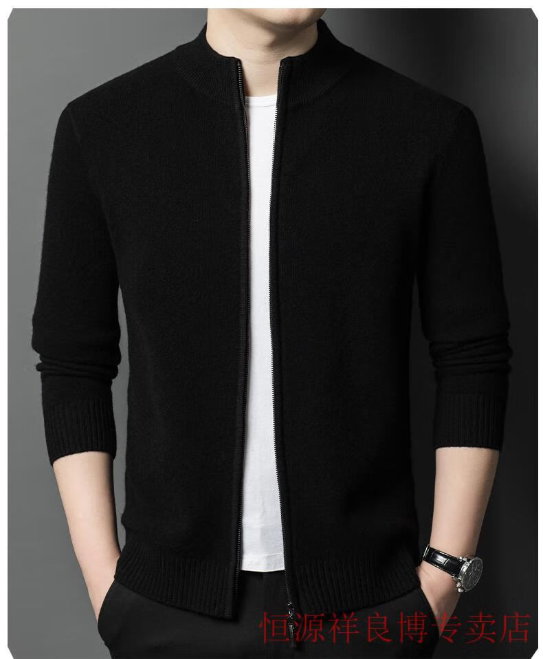 Hengyuanxiang Brand 100 Wool Cardigan Men's Autumn and Winter Zip Half Turtleneck Sweater Jacket Men's Sweater Jacket Black Real Wool 175 Recommended 130-145Jin Jin is equal to 0.5 kg