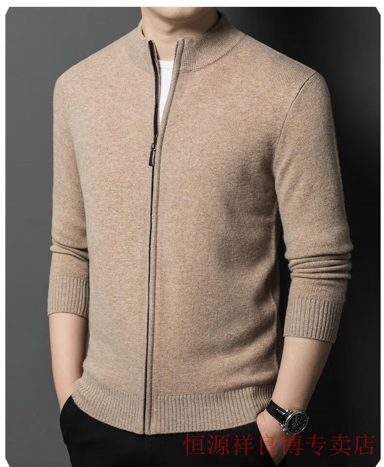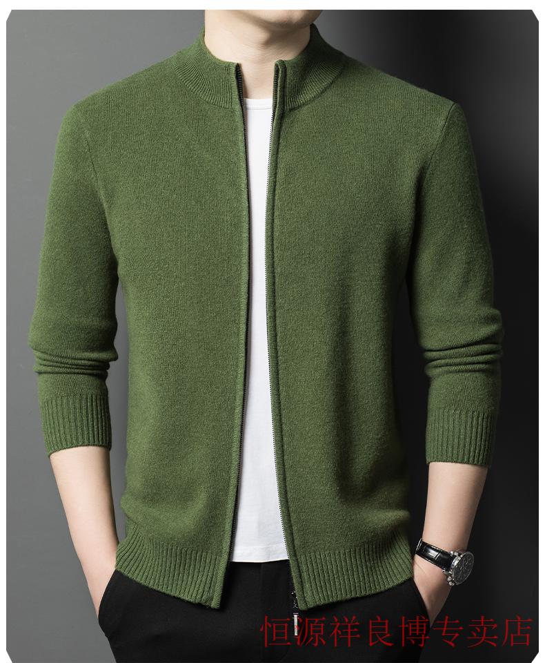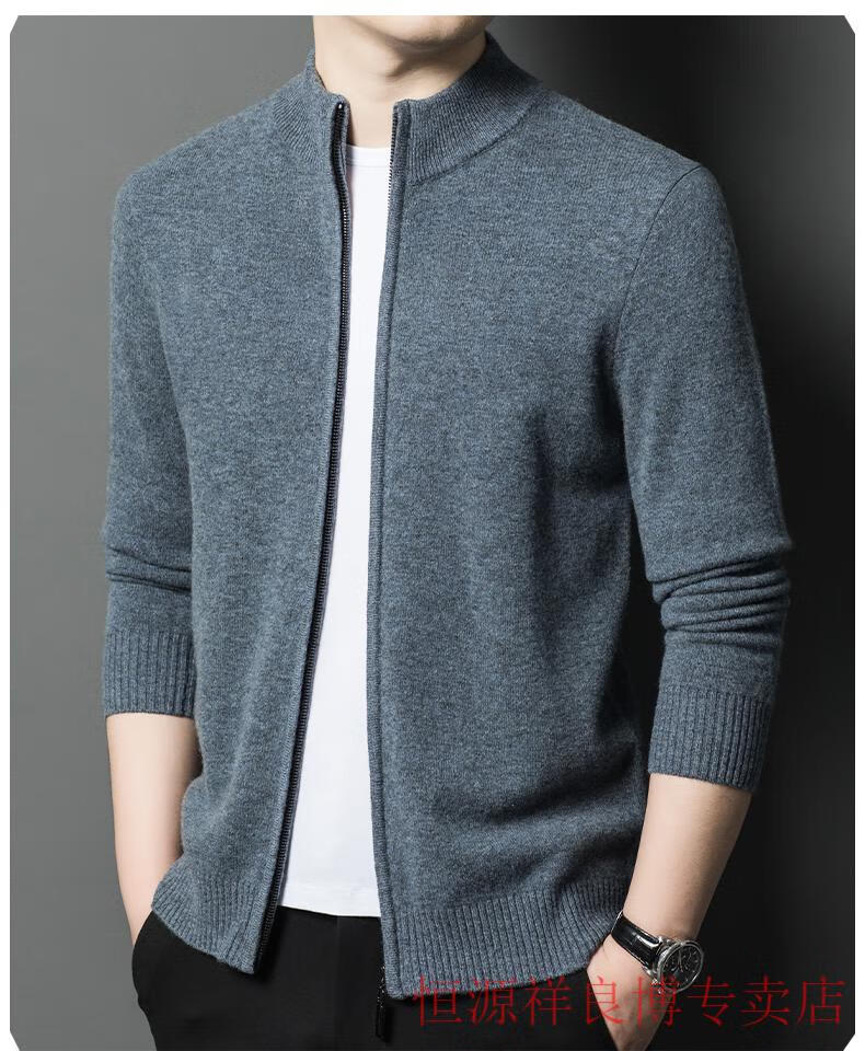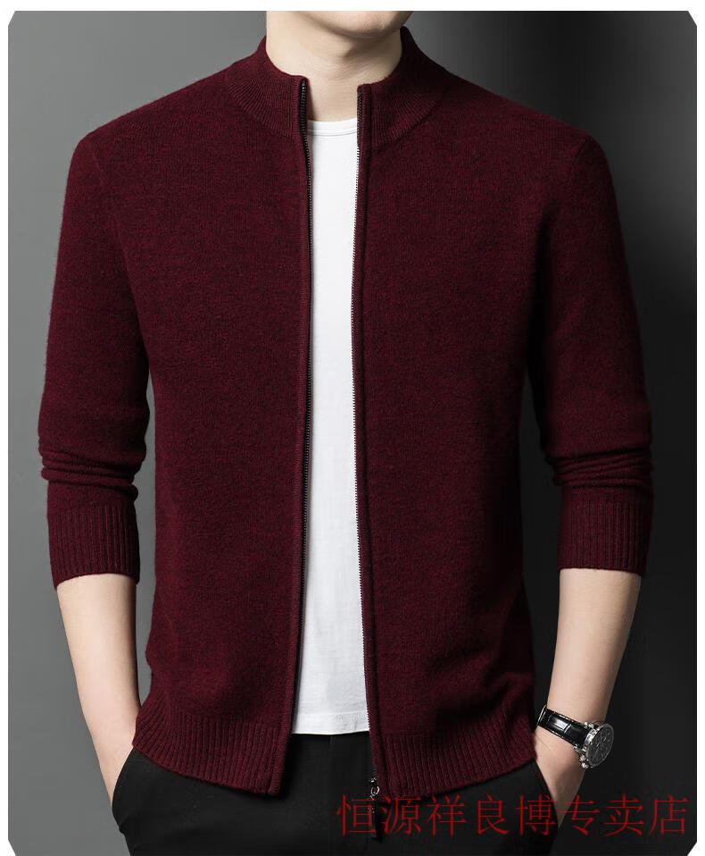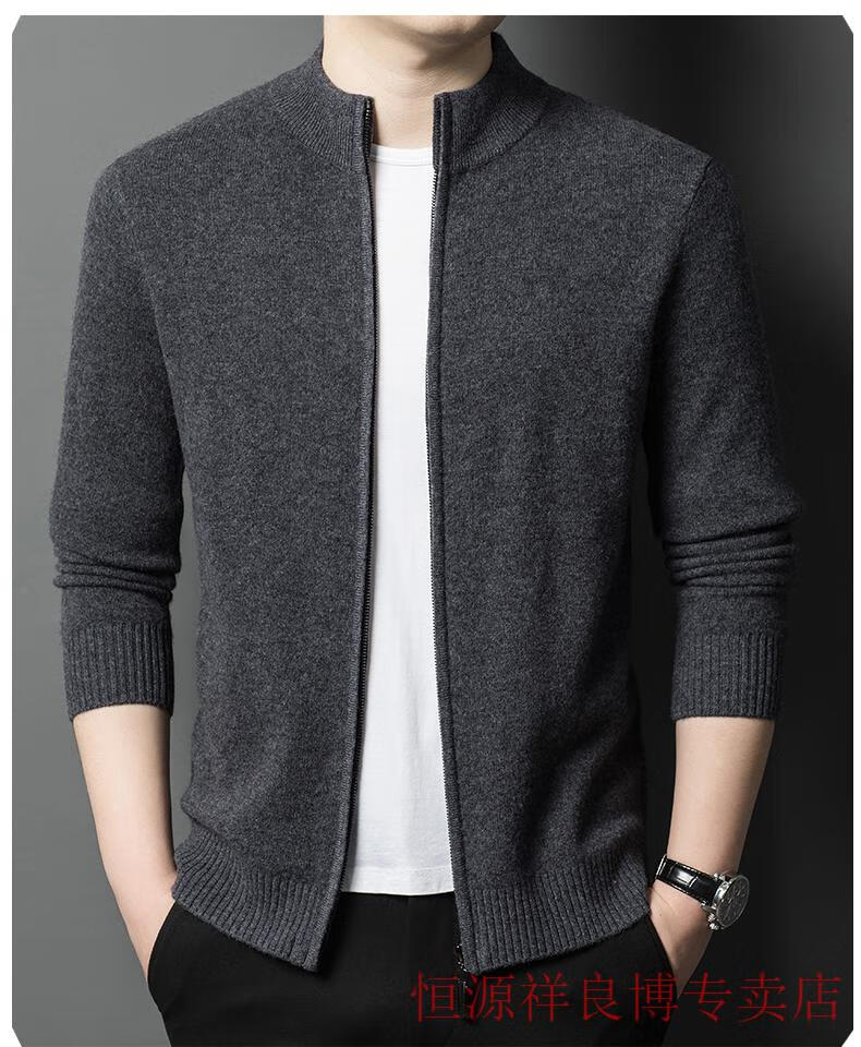 Hengyuanxiang Brand 100 Wool Cardigan Men's Autumn and Winter Zip Half Turtleneck Sweater Jacket Men's Sweater Jacket Black Real Wool 175 Recommended 130-145Jin Jin is equal to 0.5 kg
