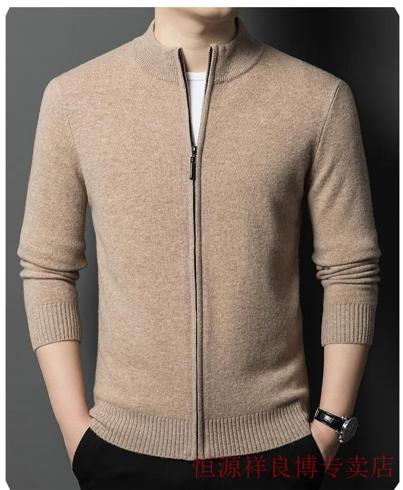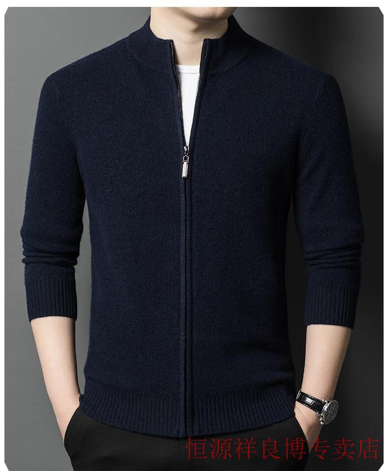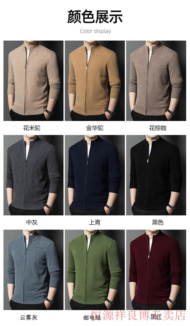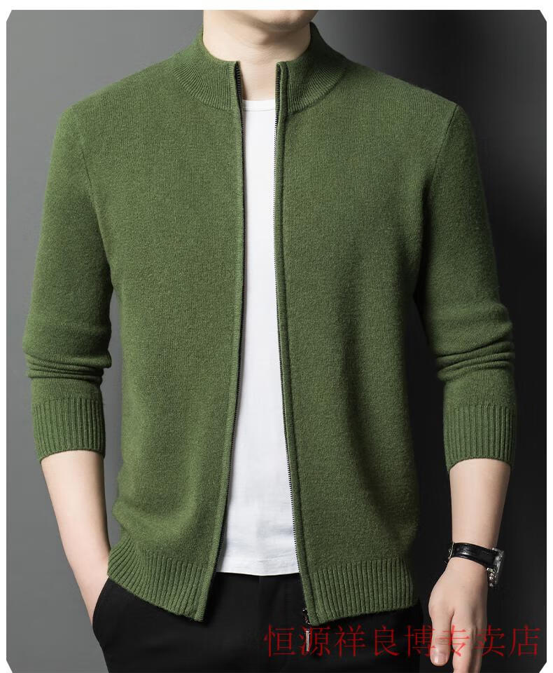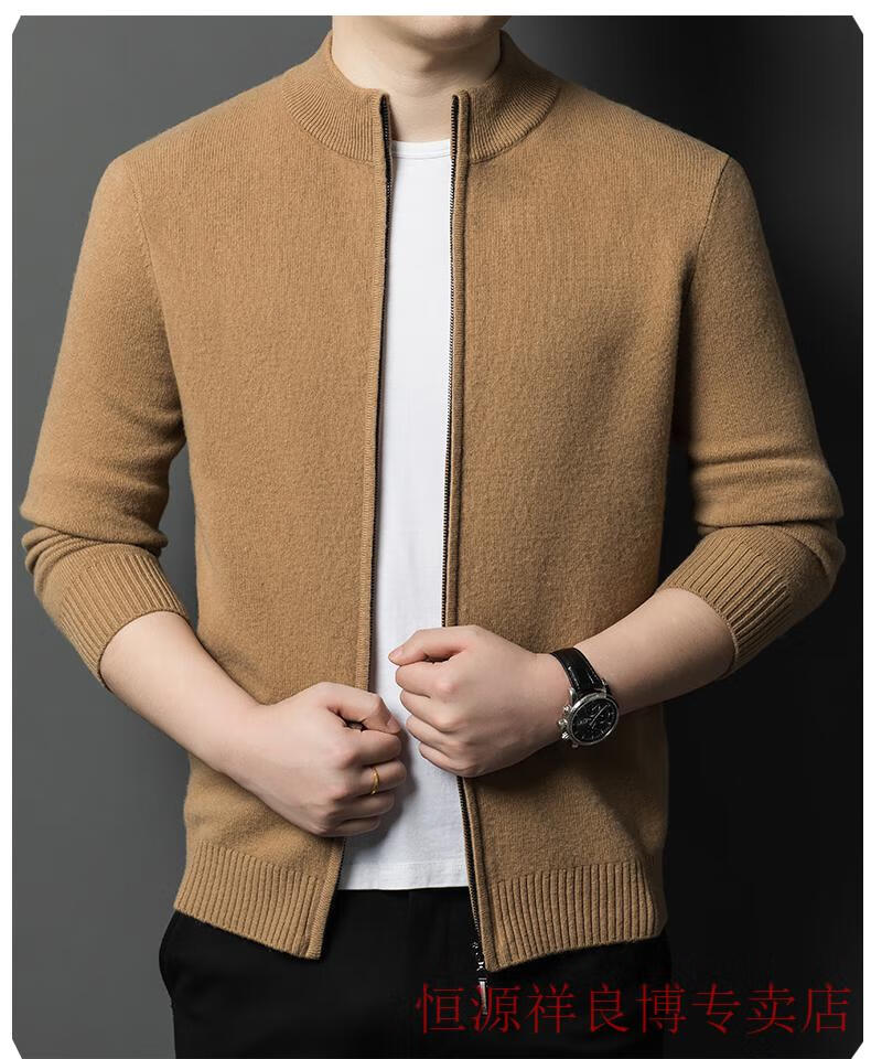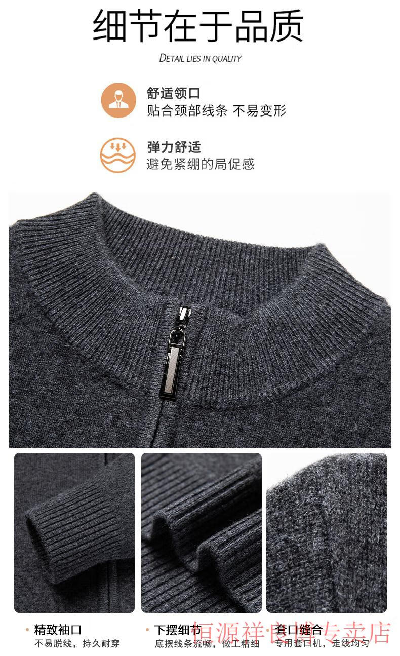 Hengyuanxiang Brand 100 Wool Cardigan Men's Autumn and Winter Zip Half Turtleneck Sweater Jacket Men's Sweater Jacket Black Real Wool 175 Recommended 130-145Jin Jin is equal to 0.5 kg
