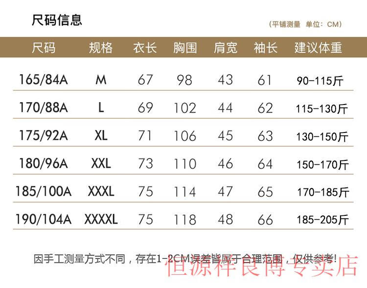 China (cm) 165 / 88-90 170 / 96-98 175 / 108-110 180 / 118-122 185 / 126-130