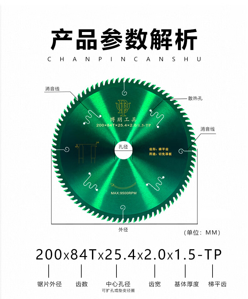 Boyue's imported woodworking saw blade does not chip, ecological board, paint-free board, special cutting blade, ladder flat tooth, double-sided saw blade, 4 inches, 8 inches, ladder flat tooth, 8 inches, 84 teeth, double-sided, non-collapse