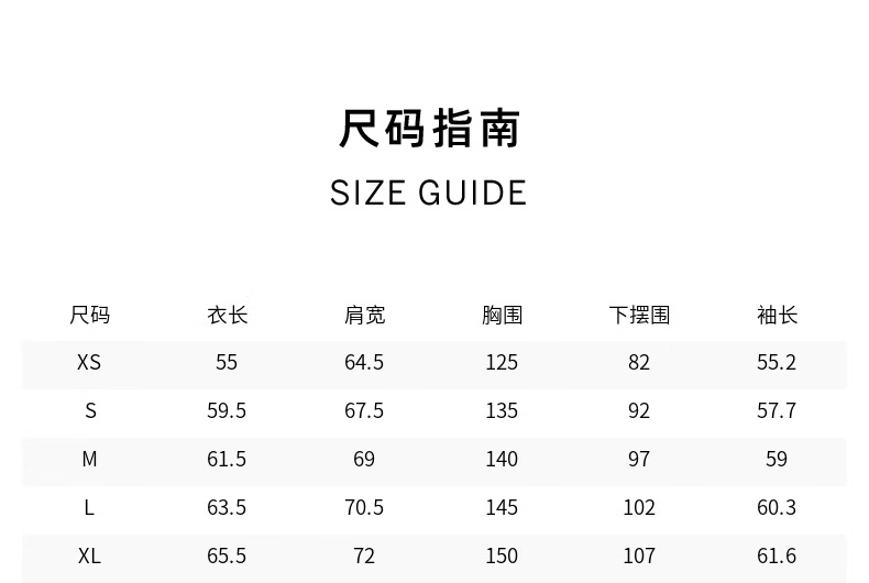 China (cm) 160-165/84-86 165-170 / 88-90 167-172 / 92-96 168-173 / 98-102 170-176 / 106-110