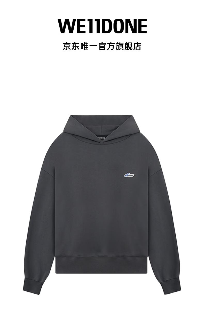 WE11DONE男女同款刺绣LOGO徽章连帽卫衣 粉色 L