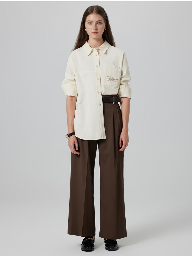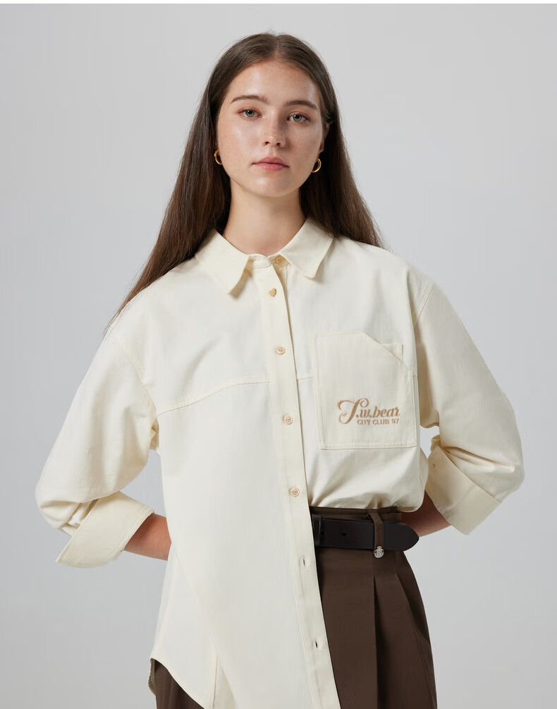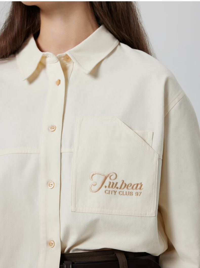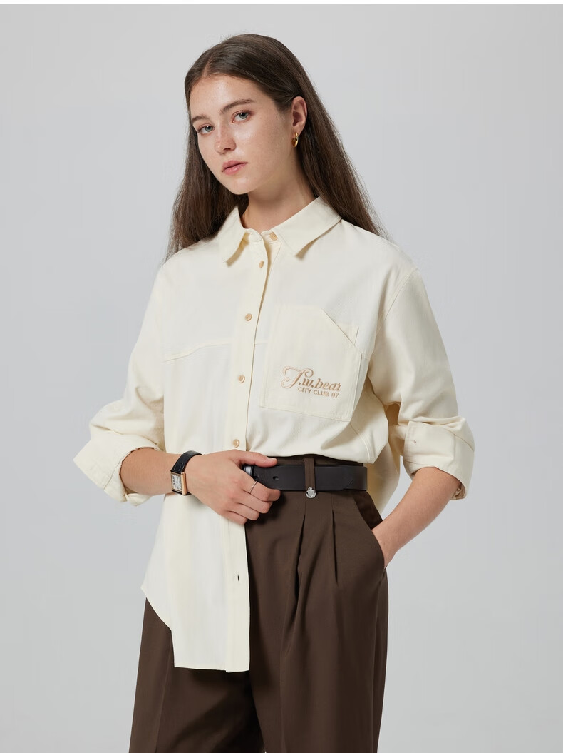 Teenie Weenie Bear Women's Shirt Autumn Shirt Long Sleeve Commuting Top Simple Casual Jacket Women's Cream White S (160)