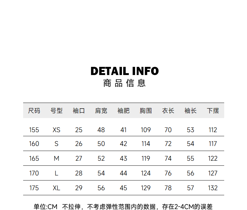 China (cm) 160-165/84-86 165-170 / 88-90 167-172 / 92-96 168-173 / 98-102 170-176 / 106-110
