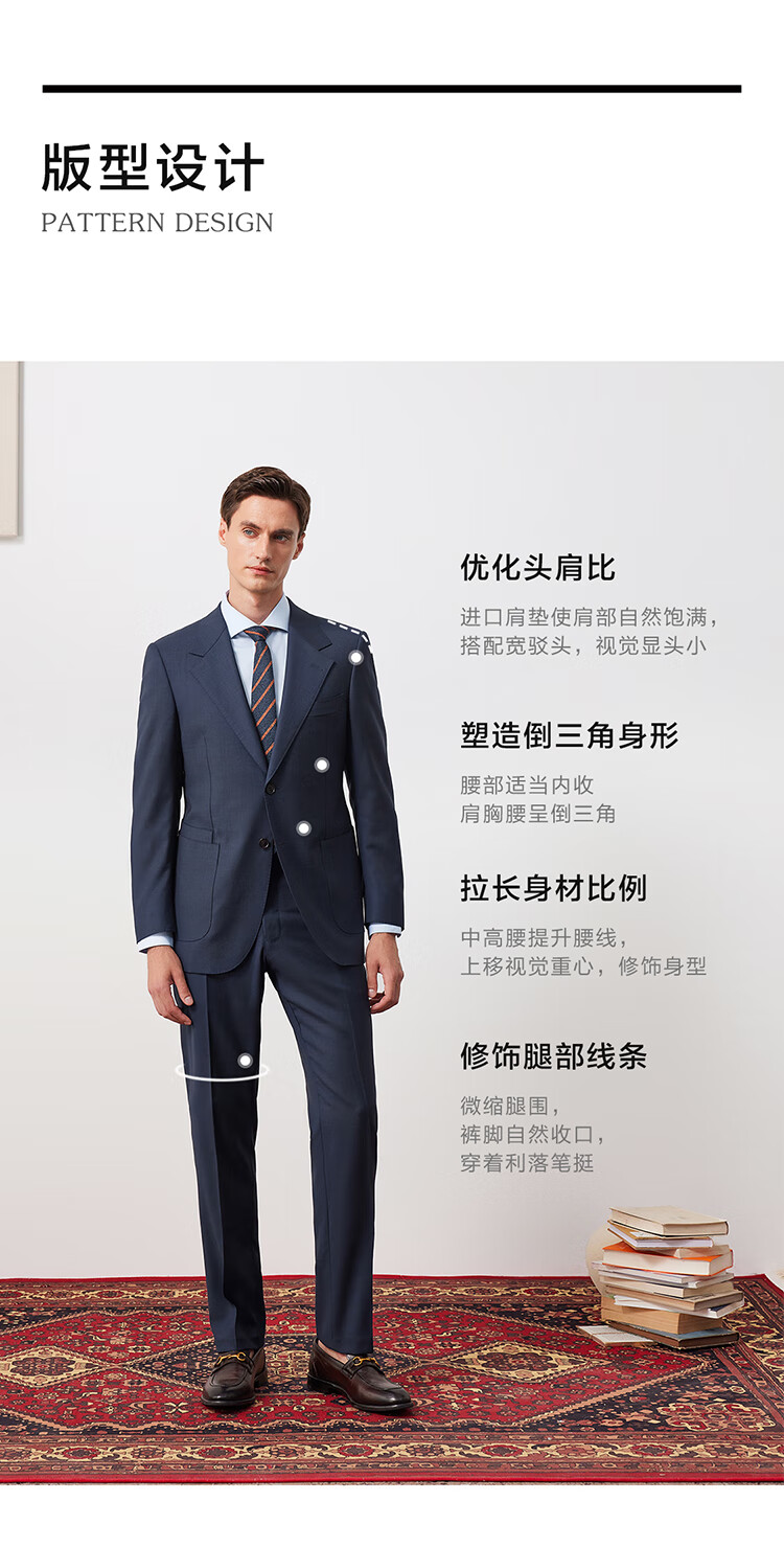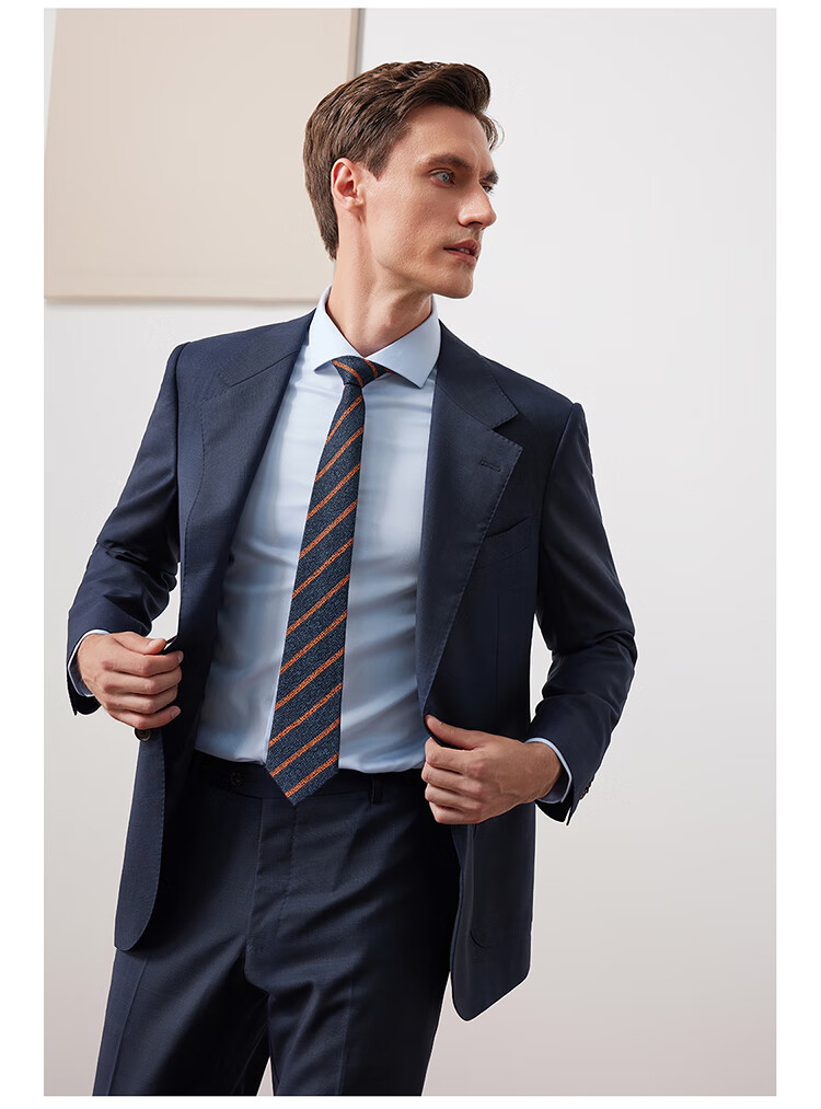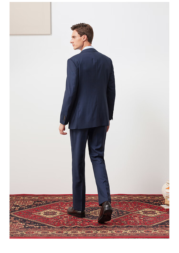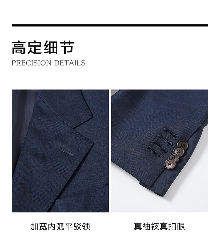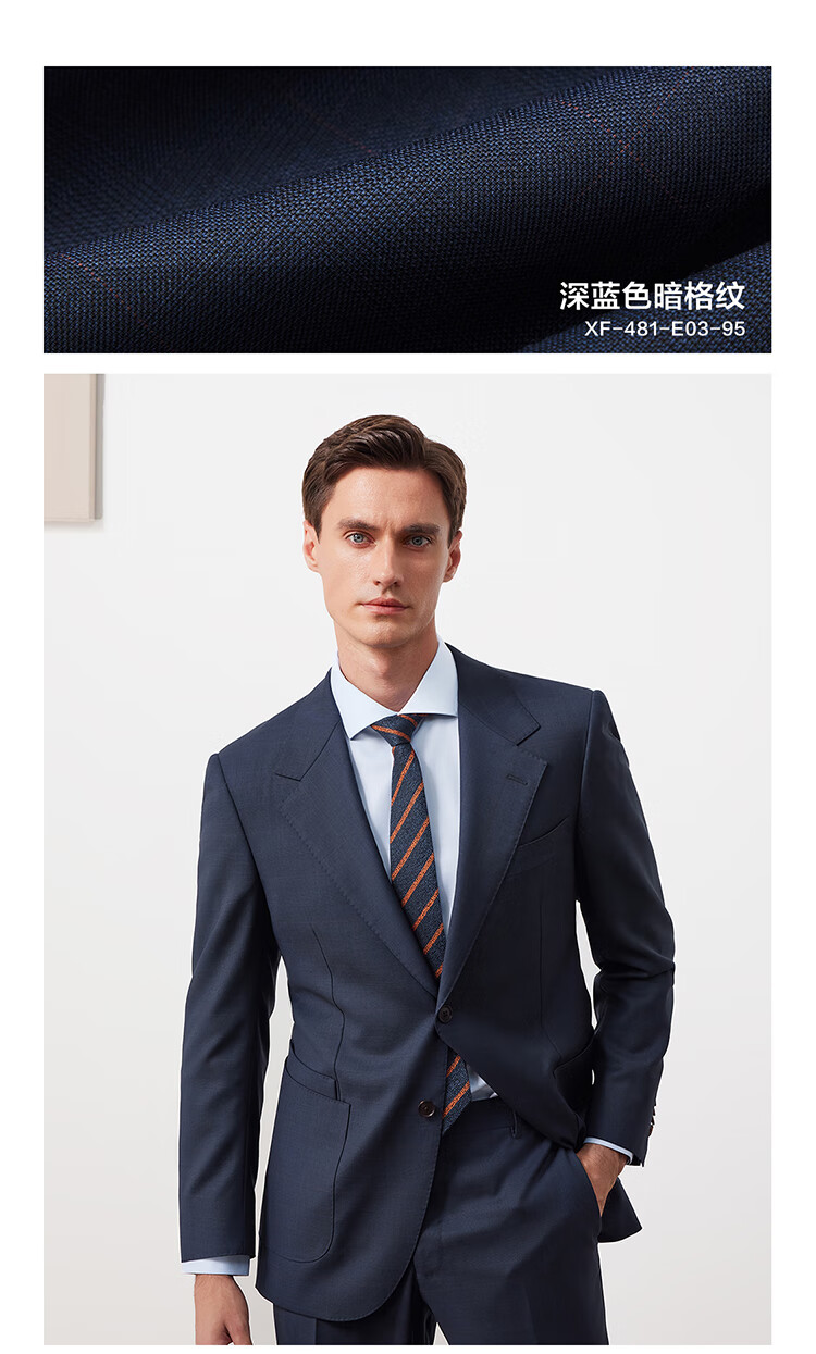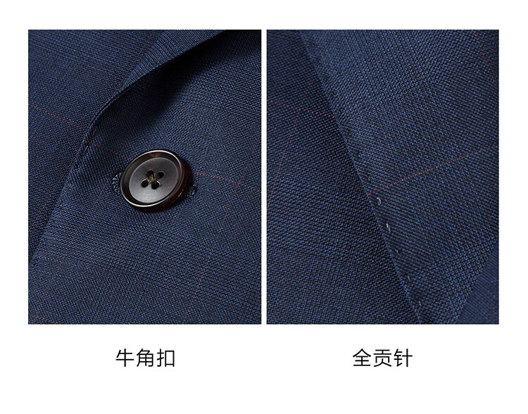 By Creations waterproof, oil-proof and stain-proof pure wool business suit suit men's commuting formal dark plaid wedding suit dark blue dark plaid 48