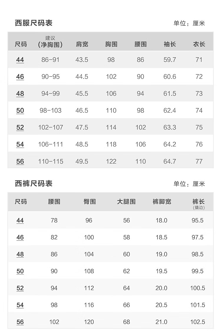 China (cm) 160-165/84-86 165-170 / 88-90 167-172 / 92-96 168-173 / 98-102 170-176 / 106-110