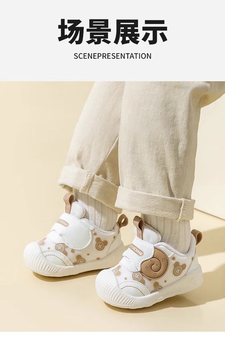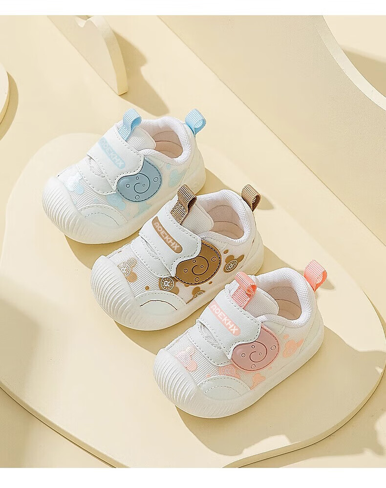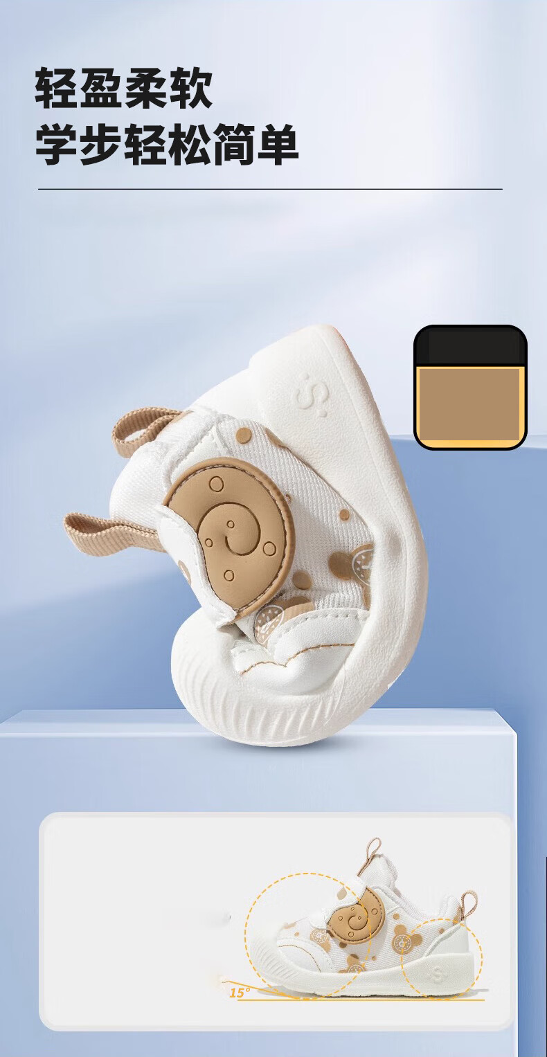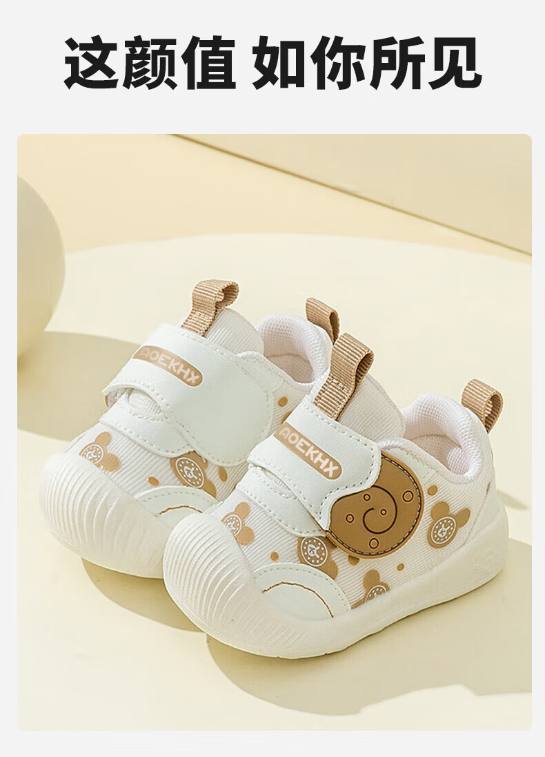 Xi'er toddler shoes for men and women in autumn, non-slip soft sole front shoes, baby shoes, children's shoes, breathable sports toddler shoes, snail, light brown, size 16, inner length 12cm