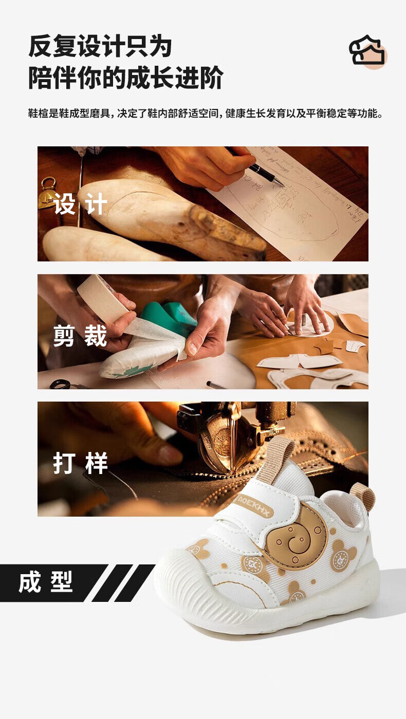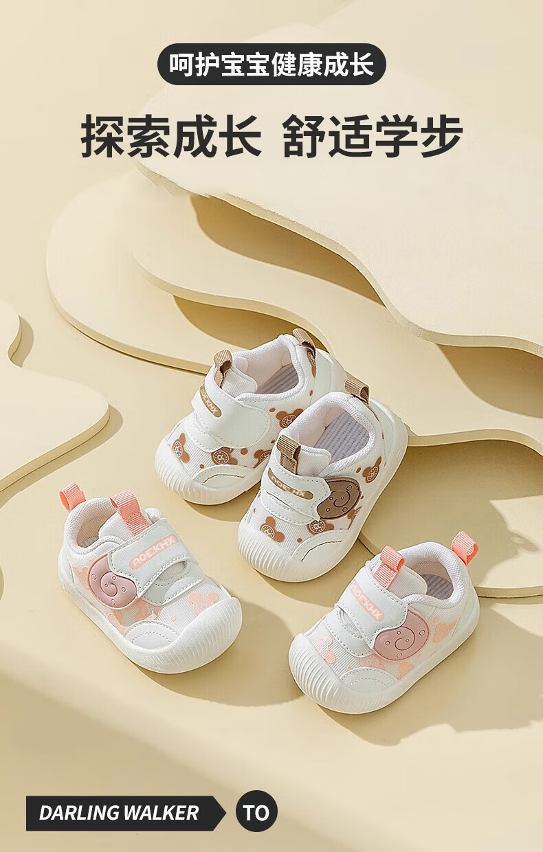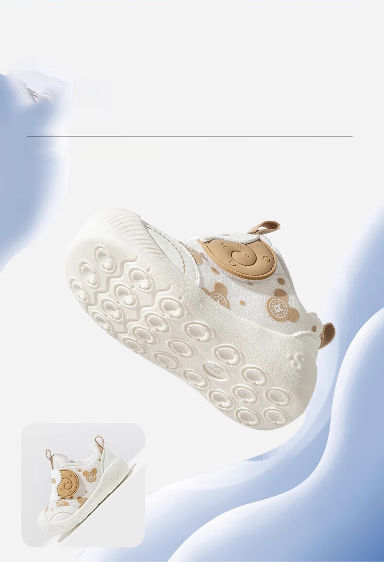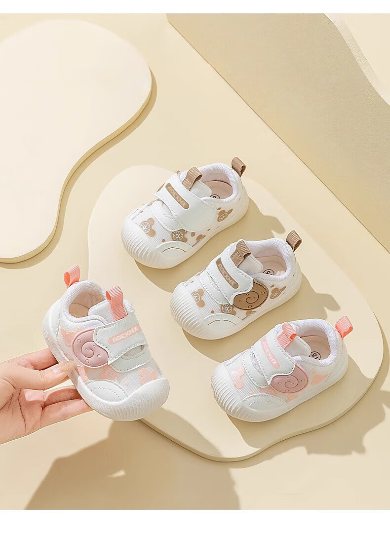 Xi'er toddler shoes for men and women in autumn, non-slip soft sole front shoes, baby shoes, children's shoes, breathable sports toddler shoes, snail, light brown, size 16, inner length 12cm