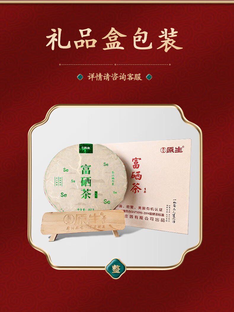 Original organic tea house Yunnan selenium-rich Pu'er tea raw tea cake 357g large-leaf tea gift leaf channel new 357g