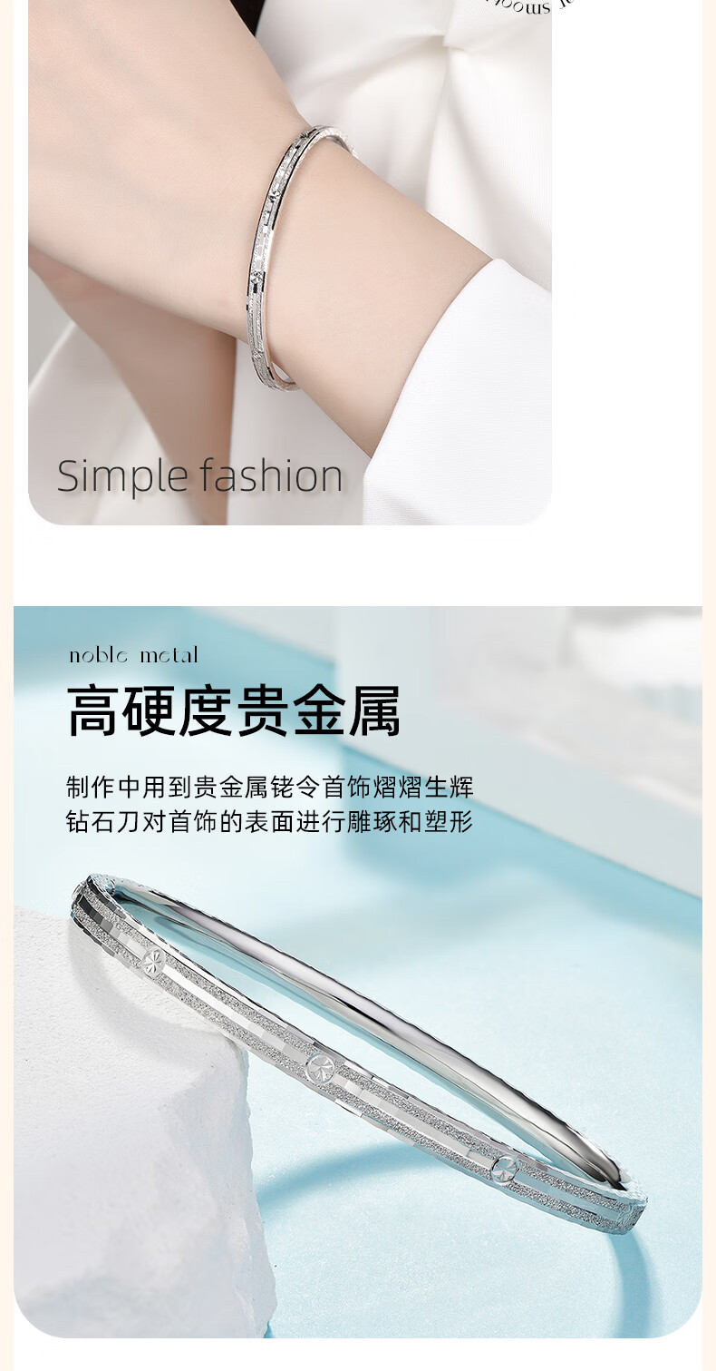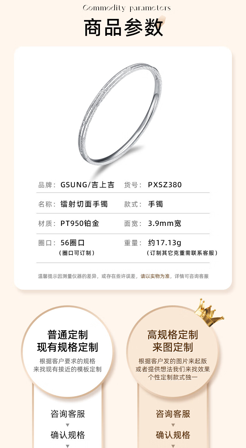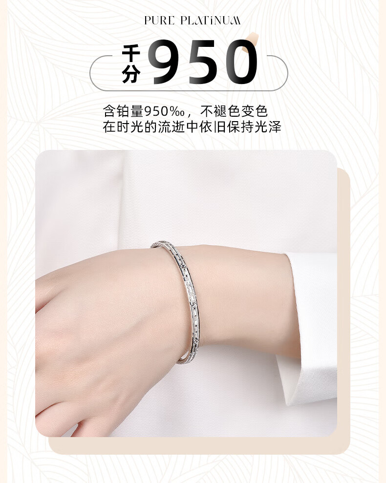 GsunG platinum bracelet women's new model PT950 double nail sandblasted bracelet platinum bracelet couple style fashionable and shiny. Priced by gram, please contact customer service before bidding for gold price.