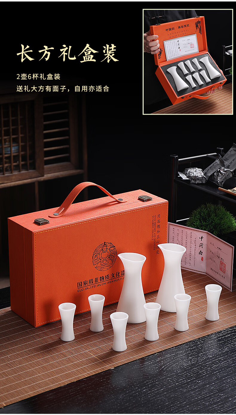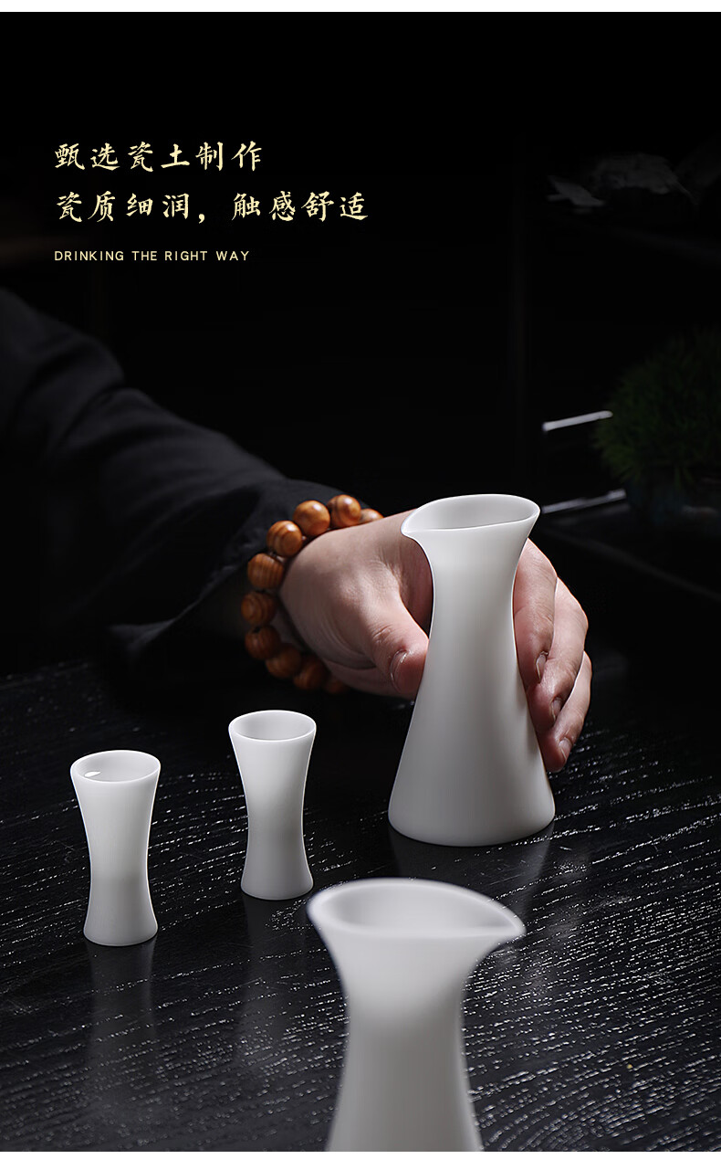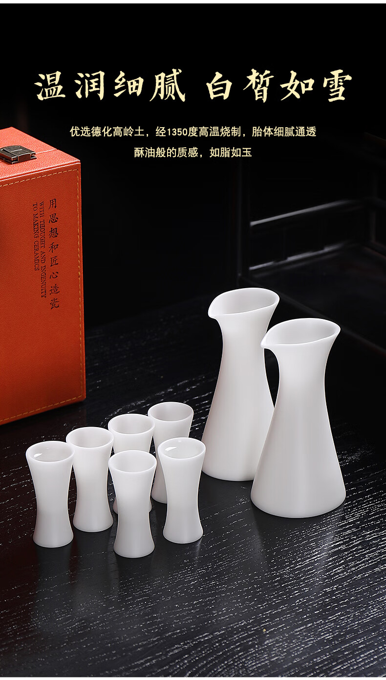 Fujian Yaofang mutton-fat jade porcelain high-end white wine glass and wine set handmade small wine glass jug wine divider sake cup hot wine jug wine glass*2