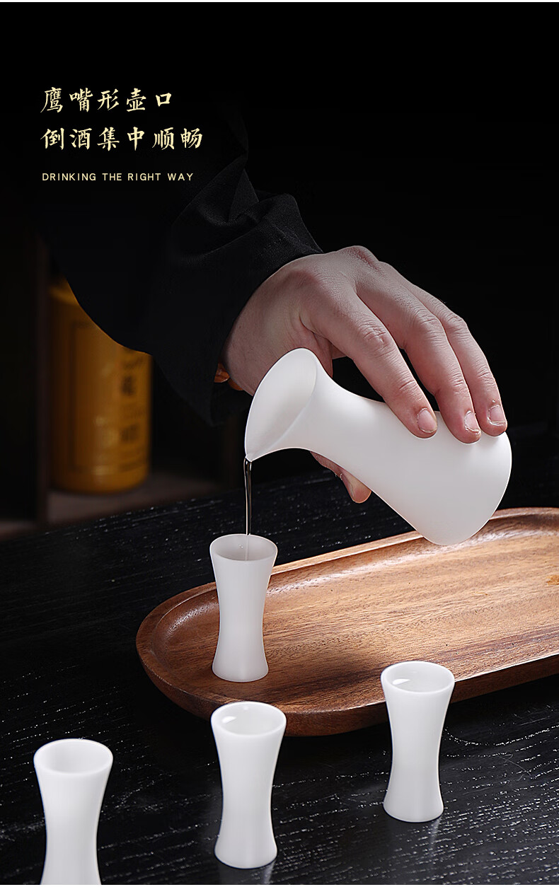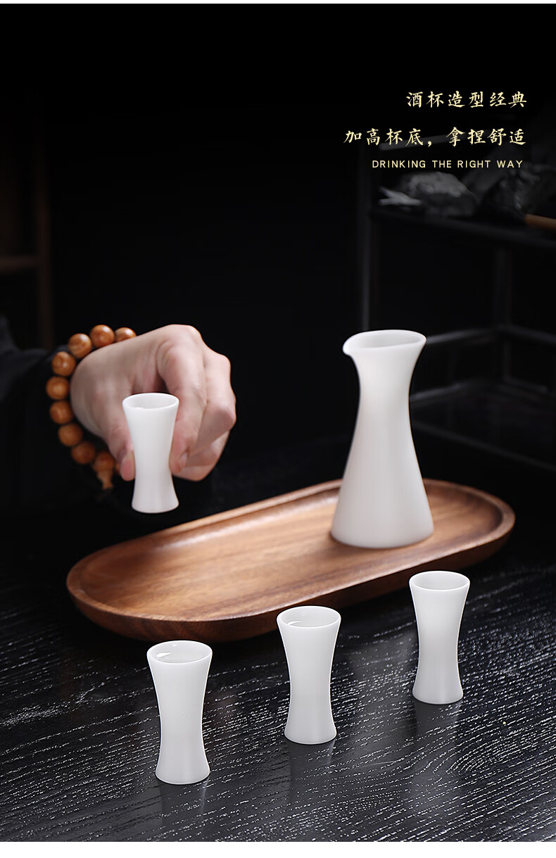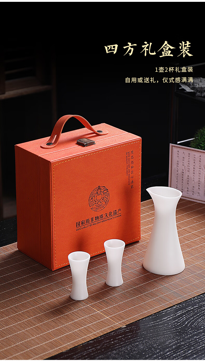 Fujian Yaofang mutton-fat jade porcelain high-end white wine glass and wine set handmade small wine glass jug wine divider sake cup hot wine jug wine glass*2