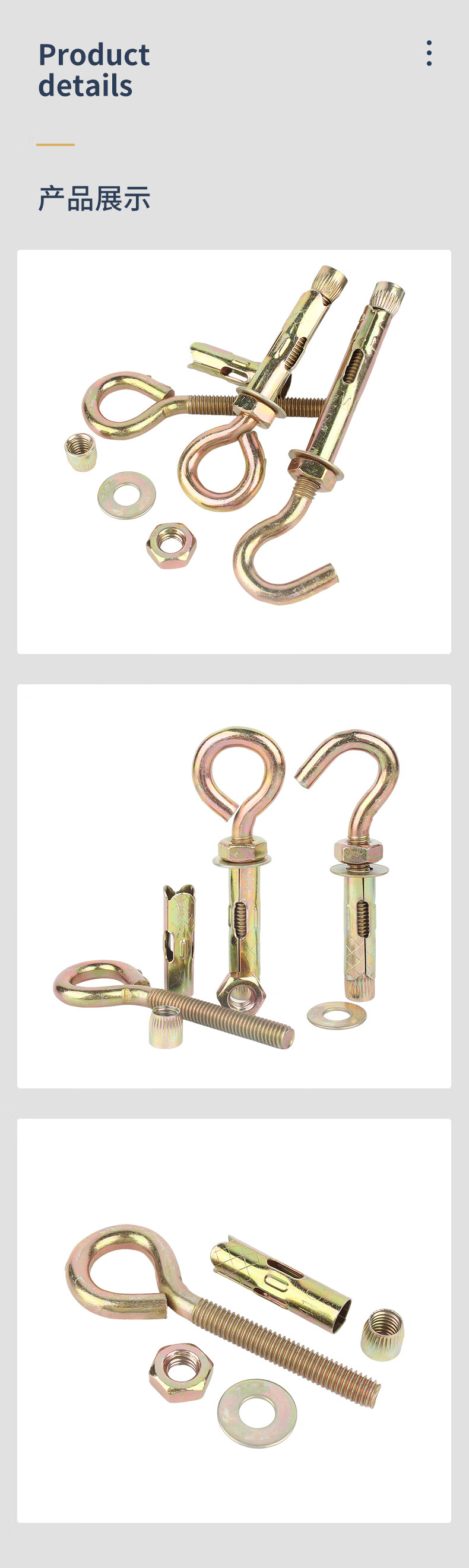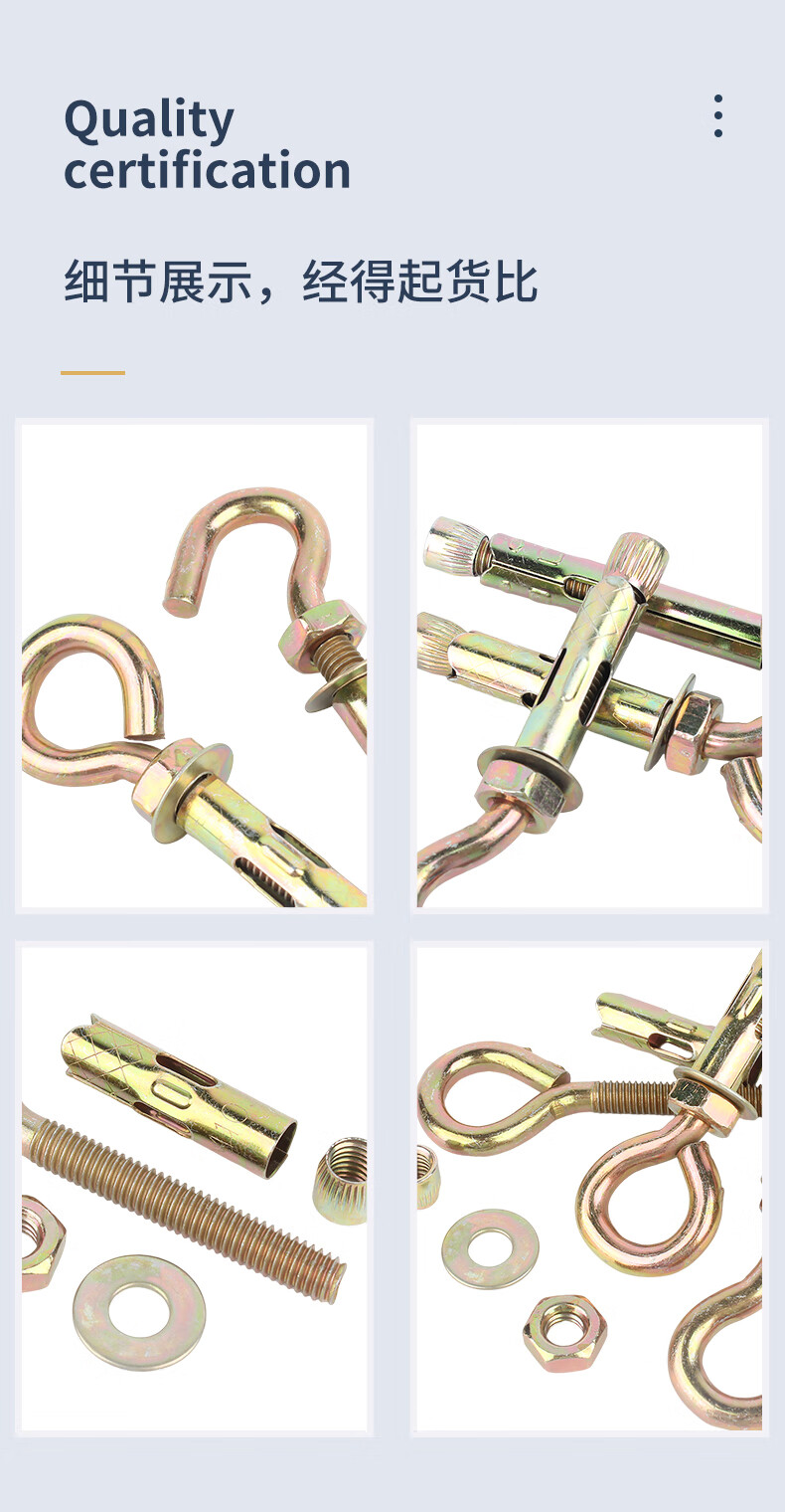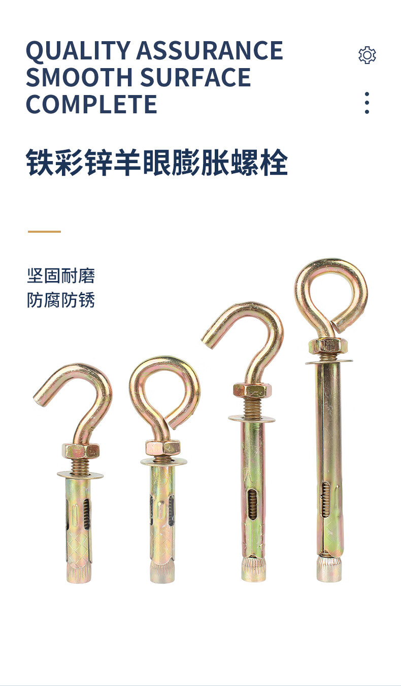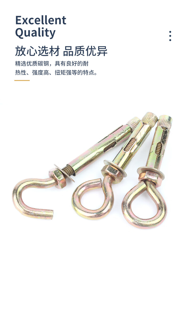 Guwanji Iron Colored Zinc Expansion Screw Hook Universal Lifting Hook 304 Stainless Steel Sheep Eye Belt Ring Pull Ring Expansion Bolt Colored Zinc Open Hook M6x45 (10 pieces)