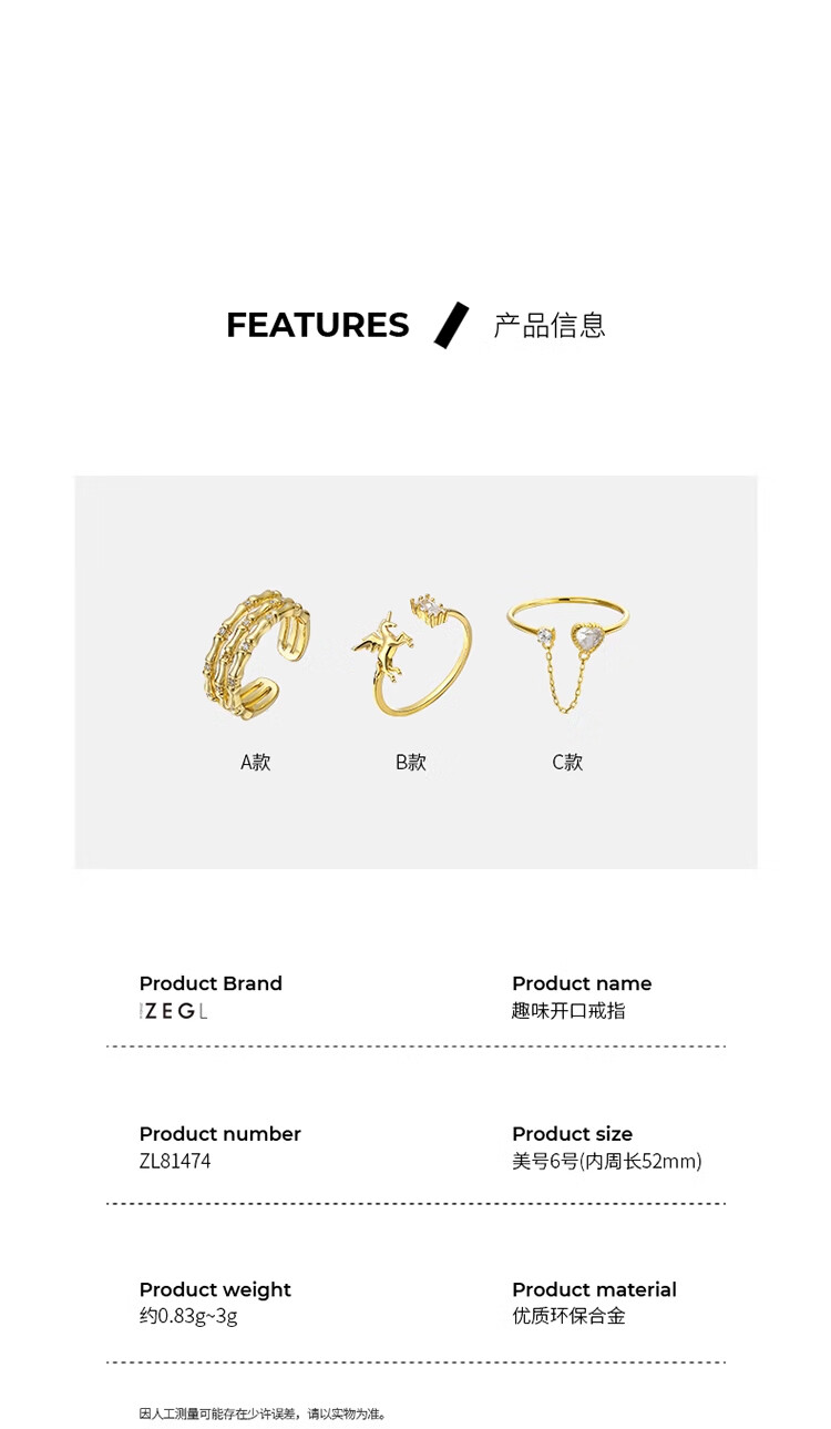 ZEGL real willow gold unicorn ring, high-end anniversary gift, model A, US size 6, inner circumference about 52mm, size 6