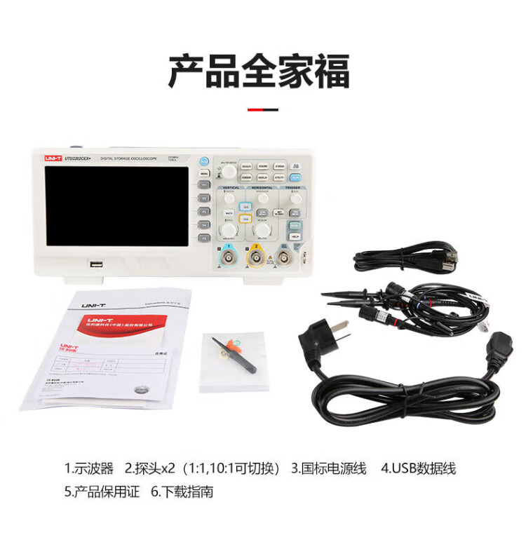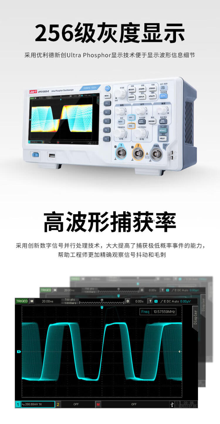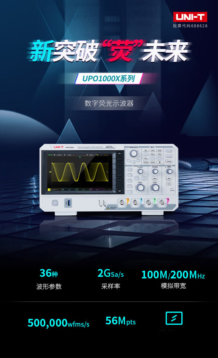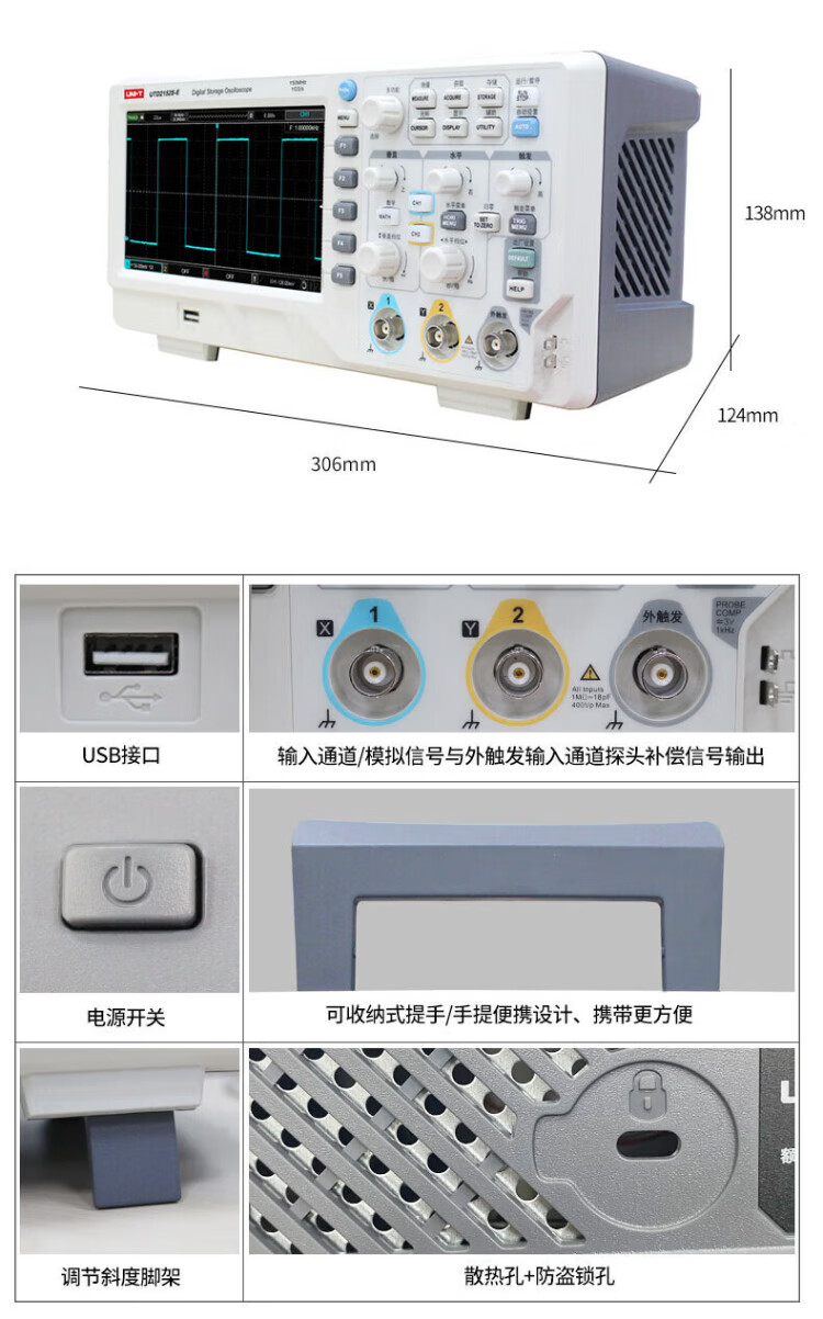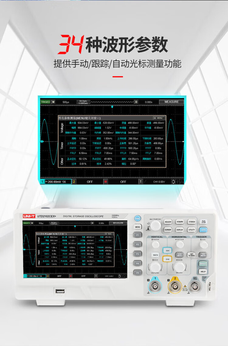 UNI-T digital oscilloscope, portable, high-precision, portable, dual-channel, sampling rate 1GSa/s, bandwidth 200MHz UPO1204X (4 channels, 200MHz, 2G sampling)