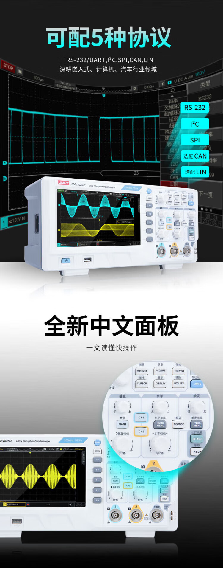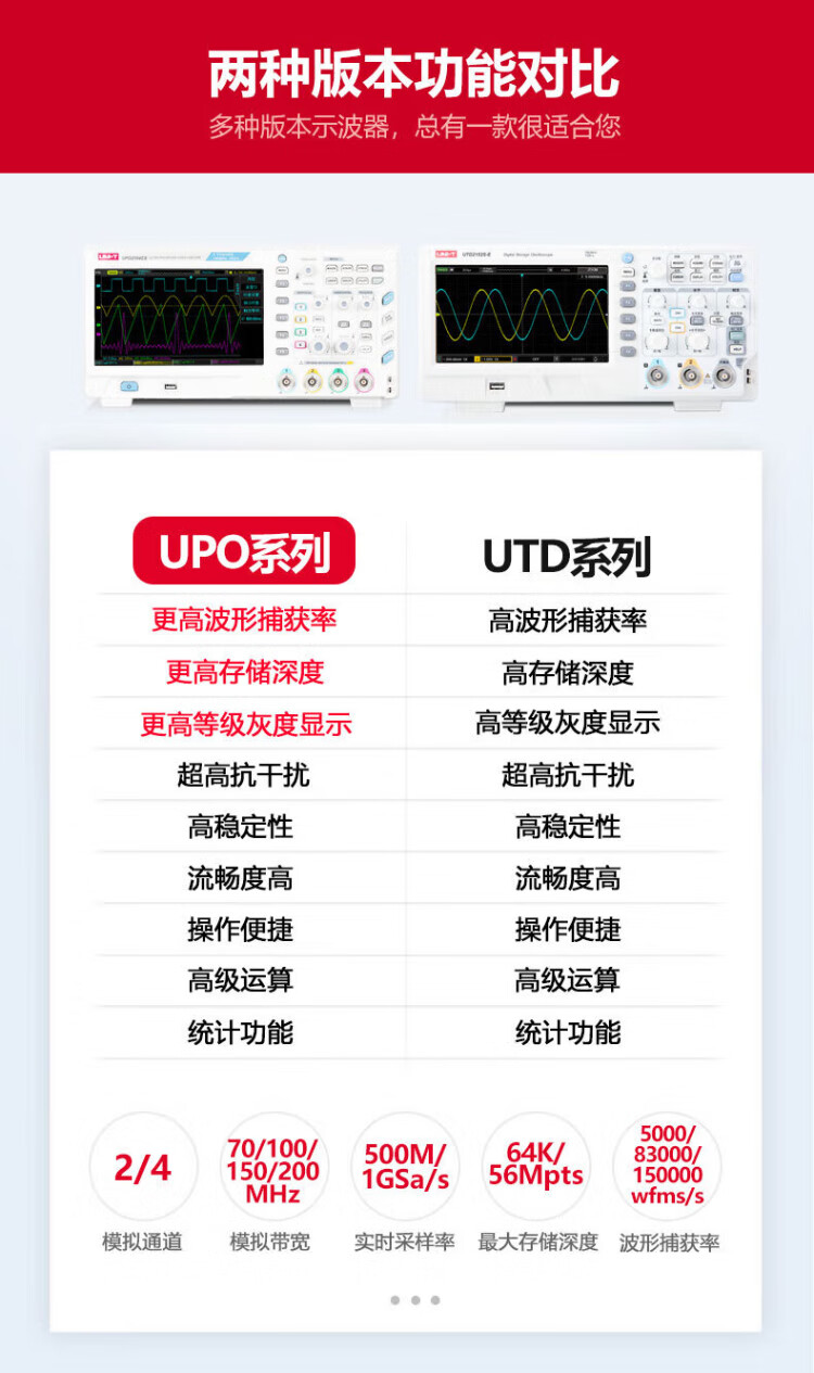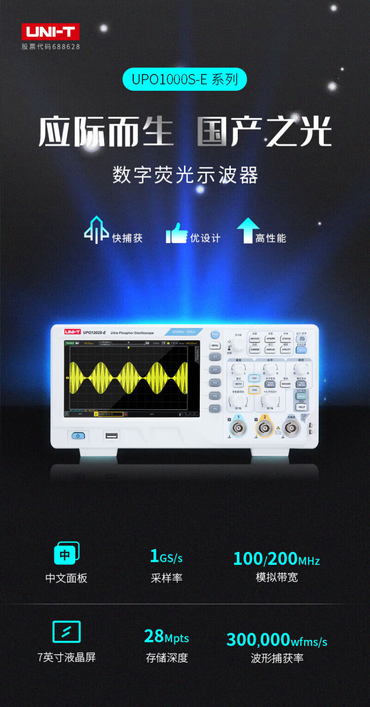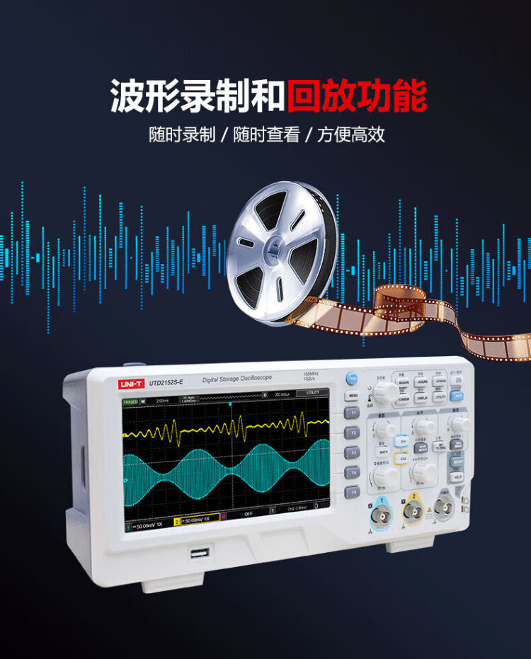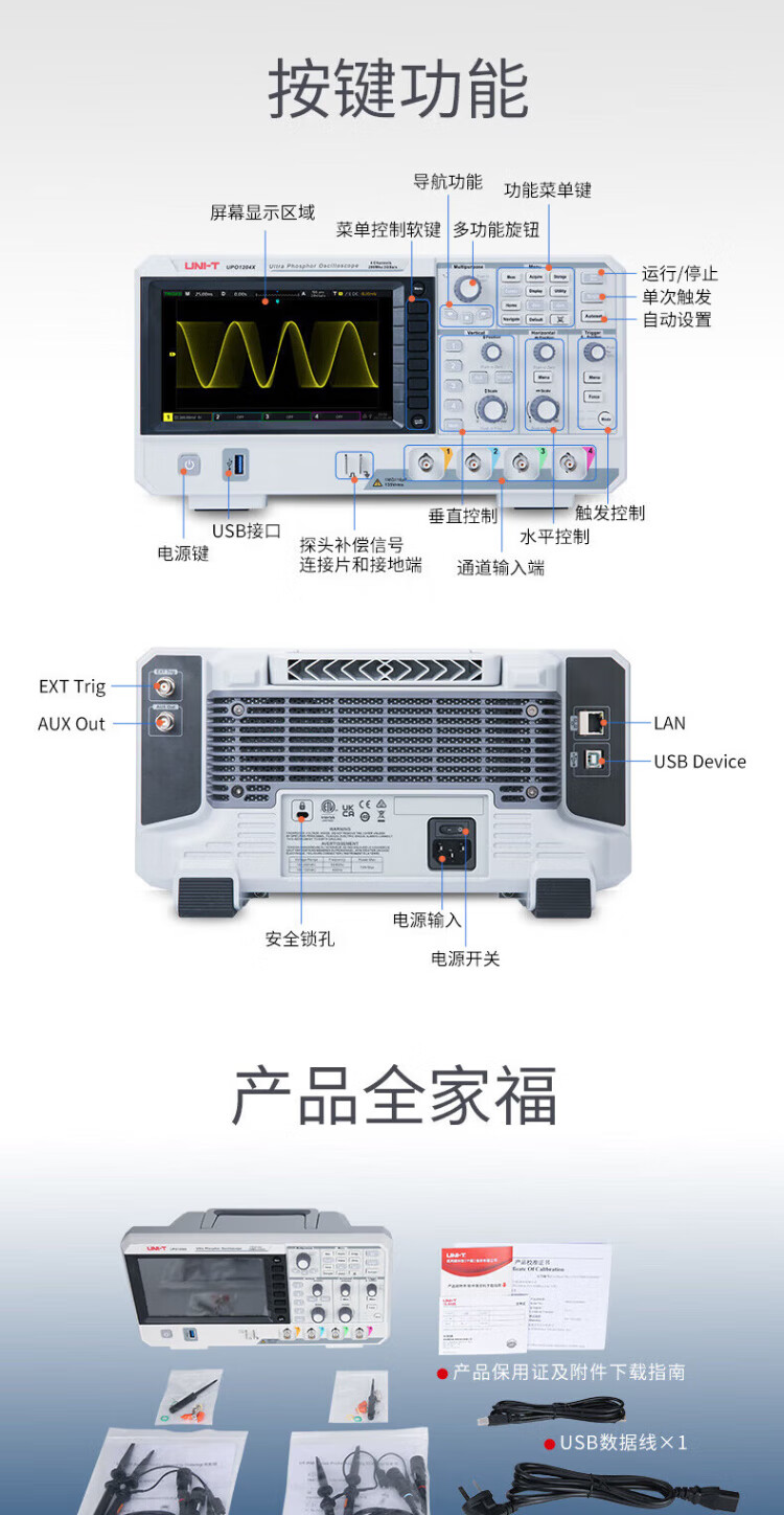 UNI-T digital oscilloscope, portable, high-precision, portable, dual-channel, sampling rate 1GSa/s, bandwidth 200MHz UPO1204X (4 channels, 200MHz, 2G sampling)