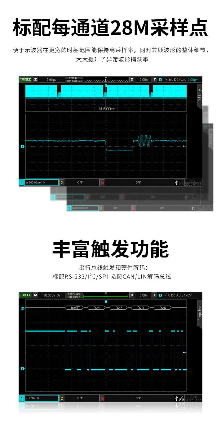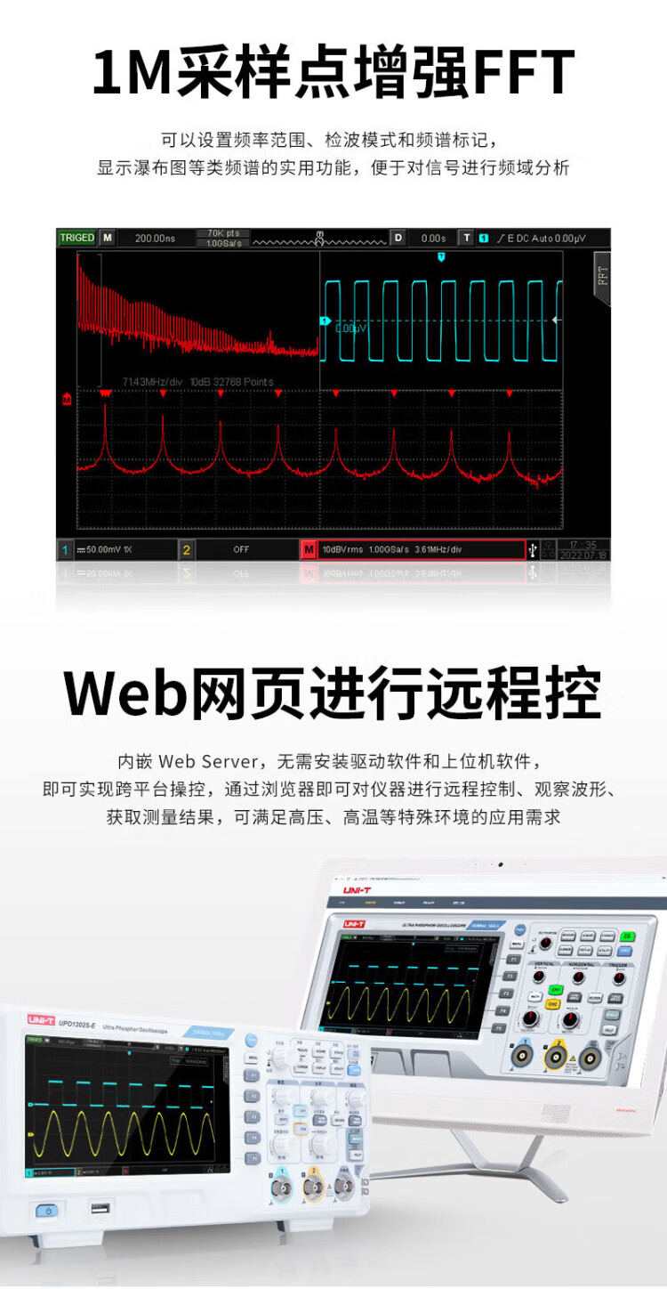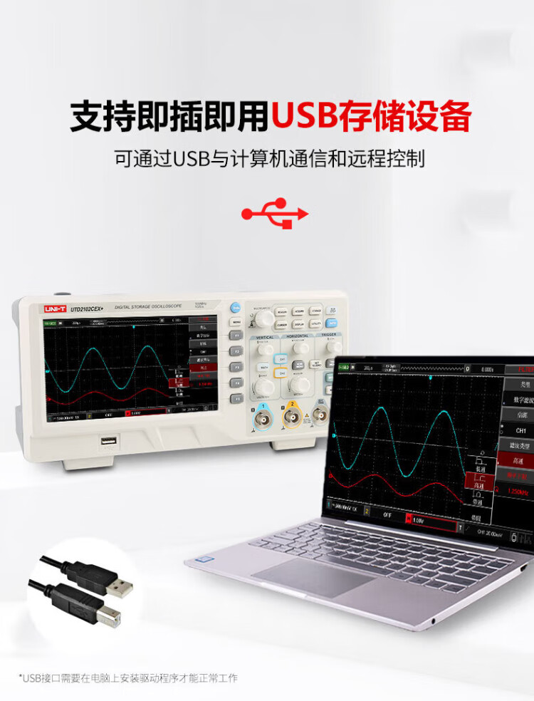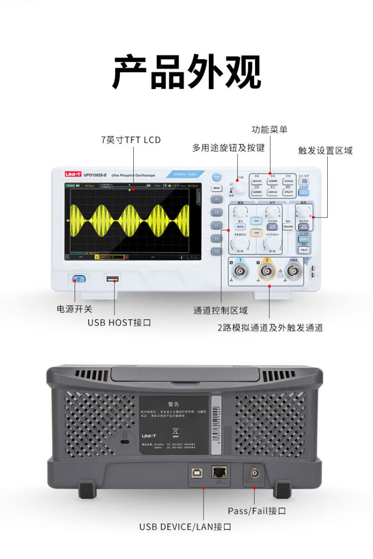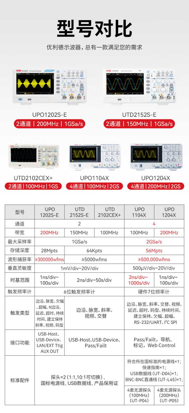 UNI-T digital oscilloscope, portable, high-precision, portable, dual-channel, sampling rate 1GSa/s, bandwidth 200MHz UPO1204X (4 channels, 200MHz, 2G sampling)