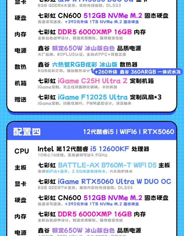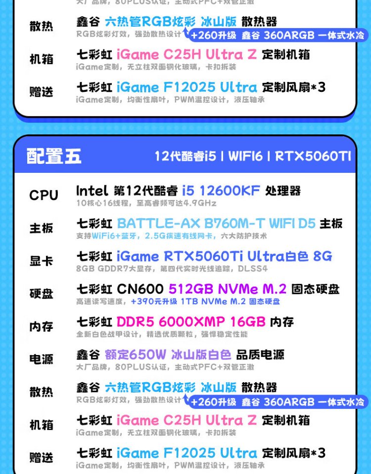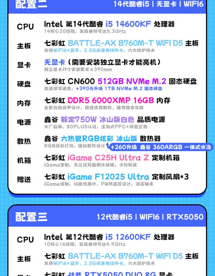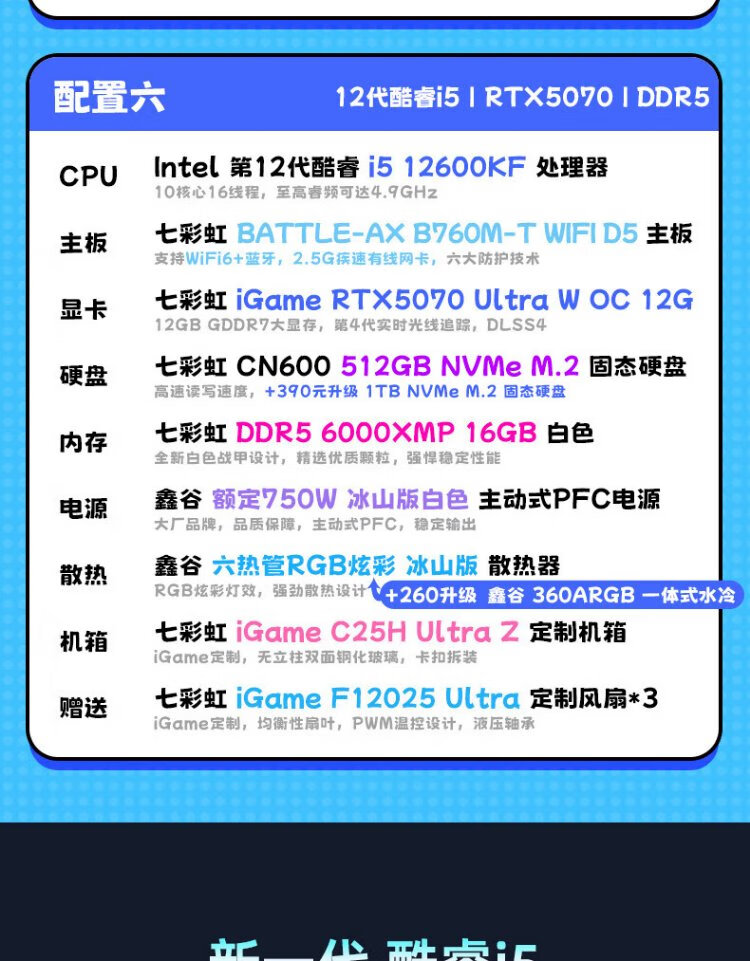 Colorful iGame computer i5 12600KF/RTX5060Ti RTX5070 desktop computer e-sports high-end game design rendering live broadcast DIY assembly host with two i5 14600KF + no graphics card + DDR5