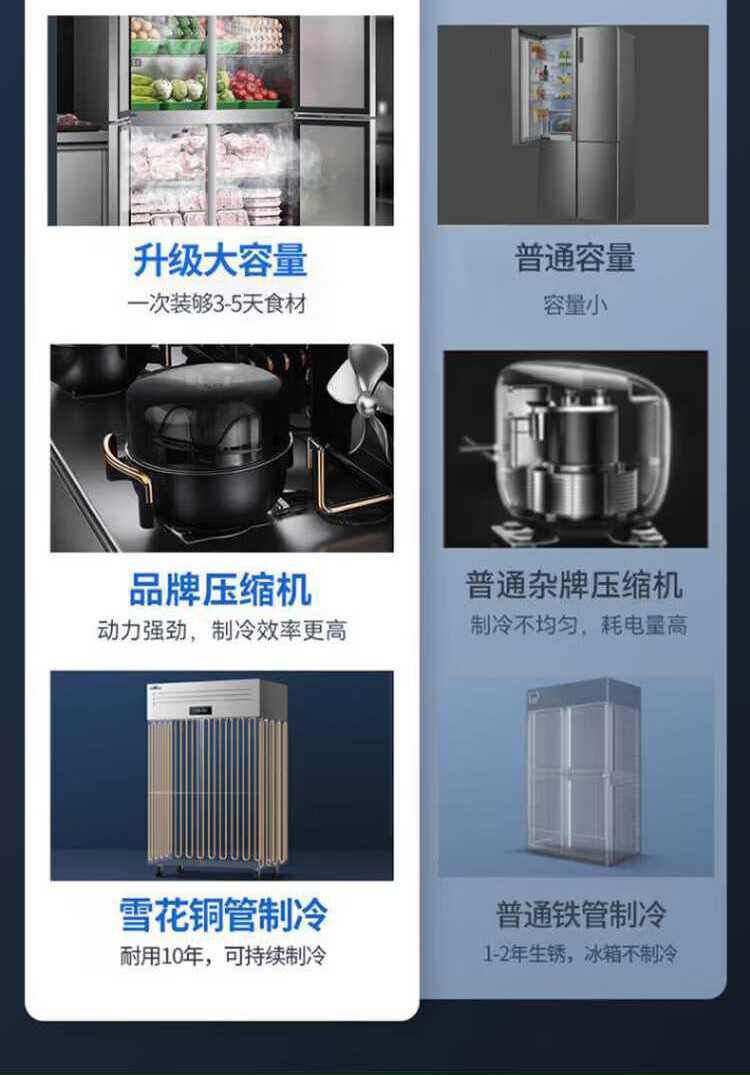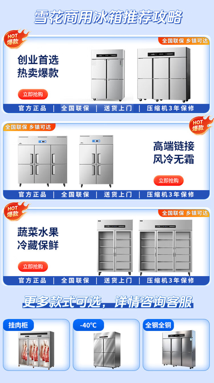 Snowflake four-door refrigerator commercial refrigeration and freezing dual-temperature six-door freezer large-capacity refrigerator catering kitchen hotel vertical stainless steel fresh-keeping cabinet four-door refrigerator refrigeration display cabinet fully frozen large four-door pure copper tube丨first-class energy-saving 2026 new upgrade丨large capacity丨efficient refrigeration