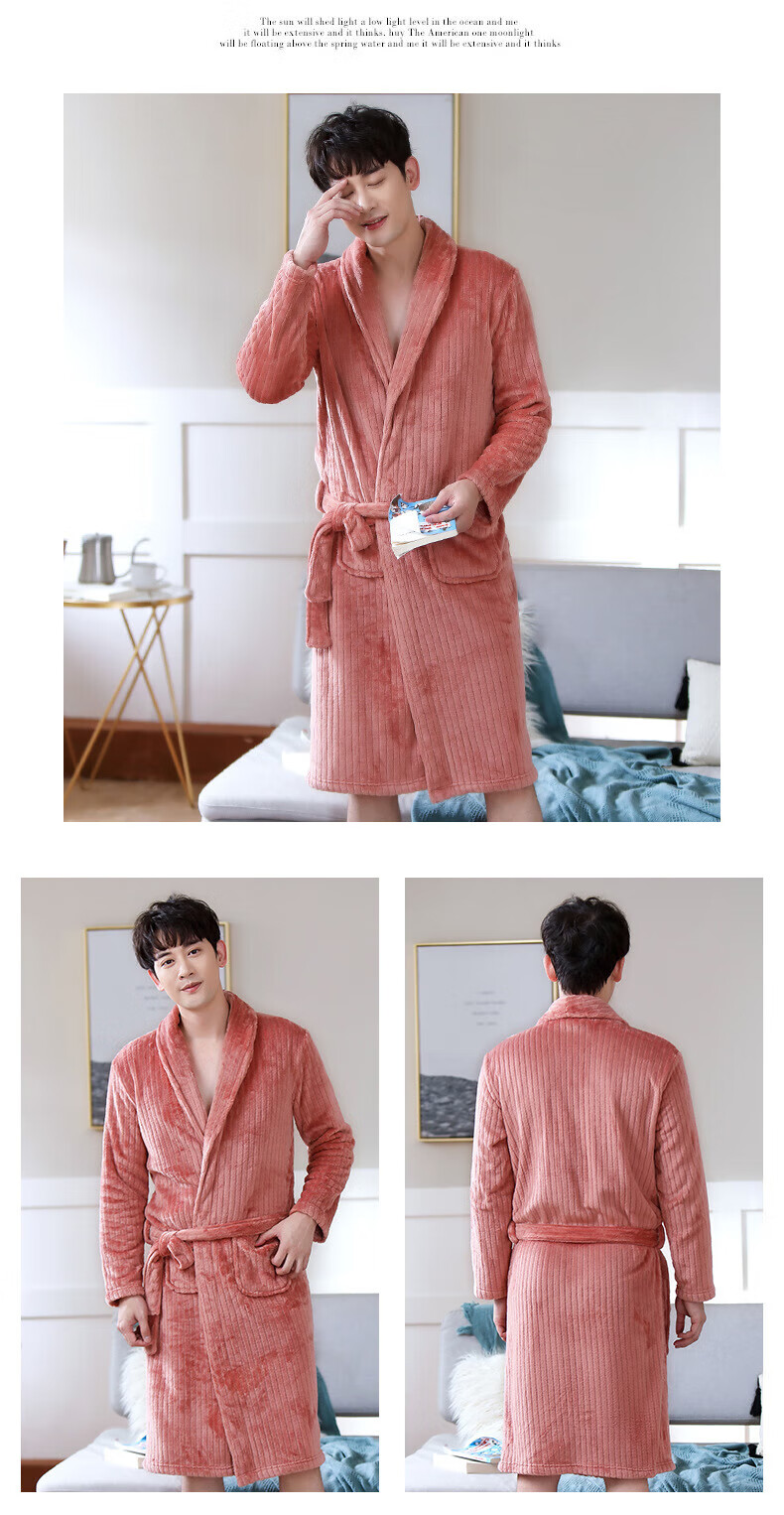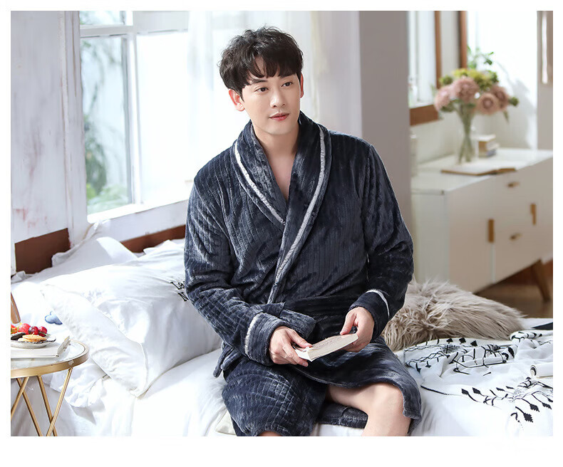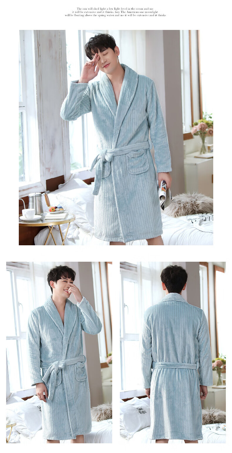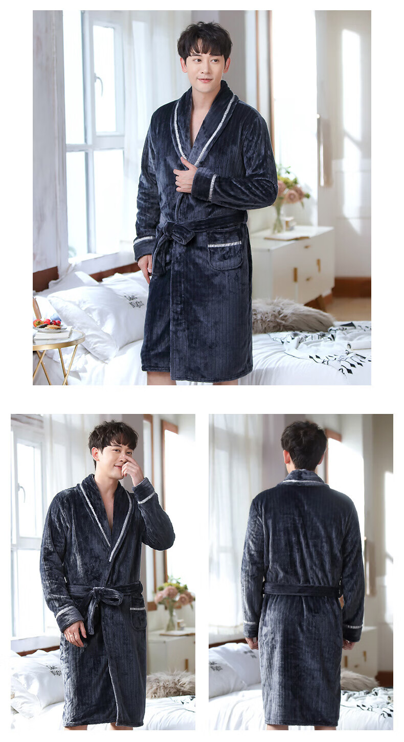 Yalu 25th Autumn and Winter New Men's Nightgown Coral Velvet Home Clothes Warm Flannel Large Size Bathrobe Large Size Home Clothes NSCJF-Light Gray Bathrobe Men's Y809 One Size
