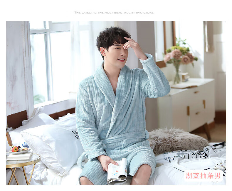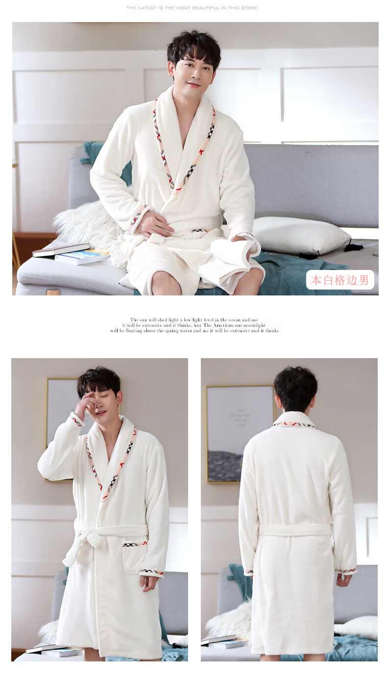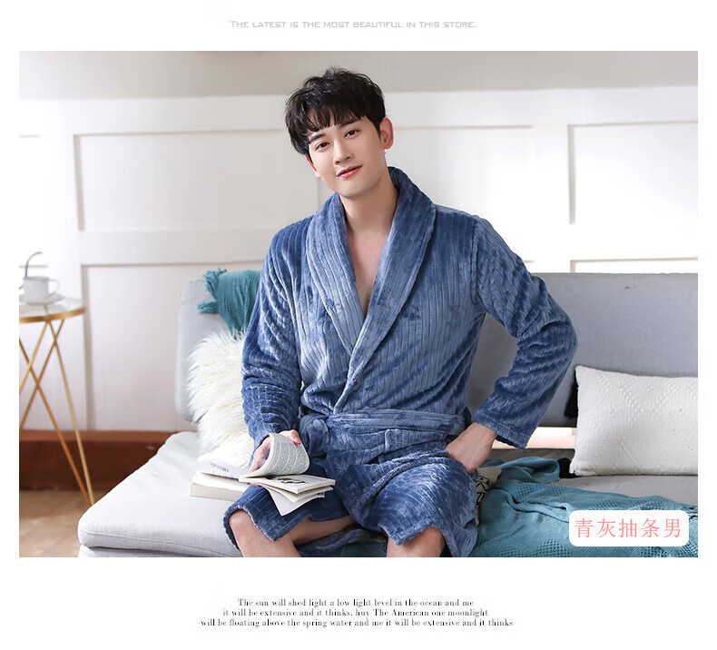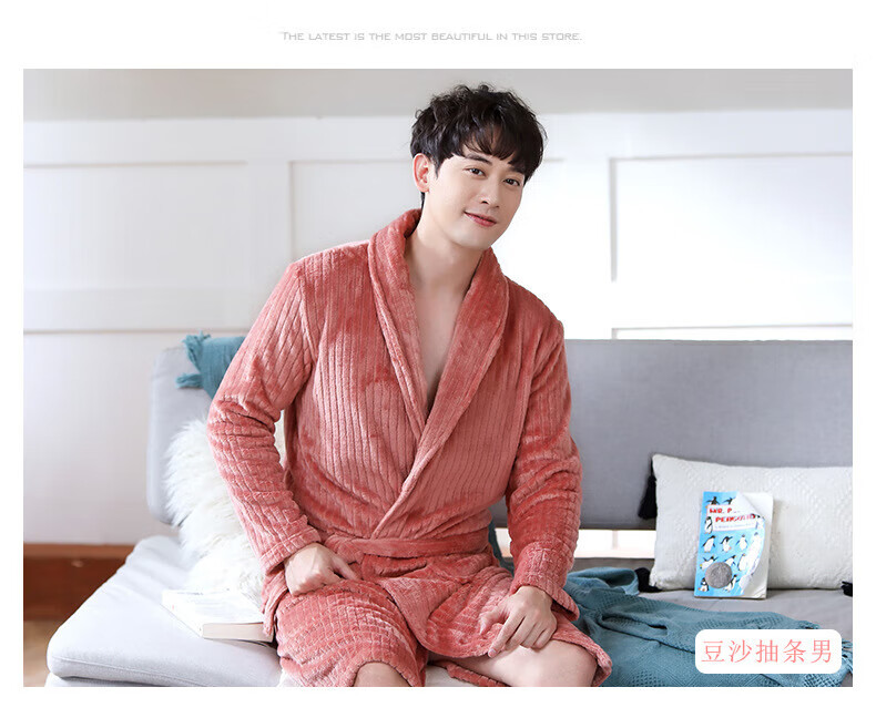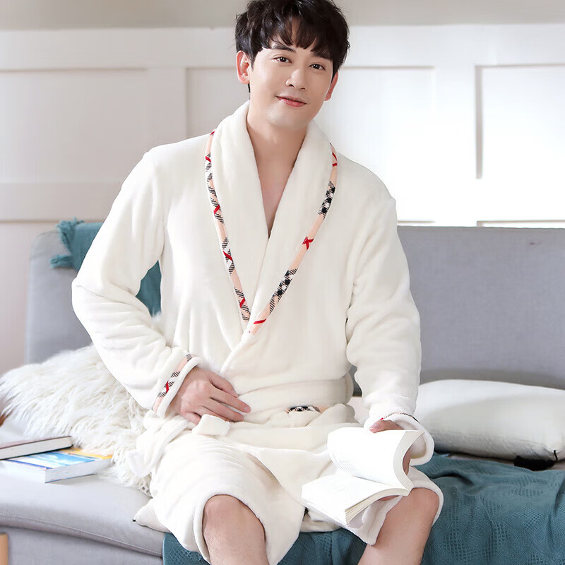 Yalu 25th Autumn and Winter New Men's Nightgown Coral Velvet Home Clothes Warm Flannel Large Size Bathrobe Large Size Home Clothes NSCJF-Light Gray Bathrobe Men's Y809 One Size