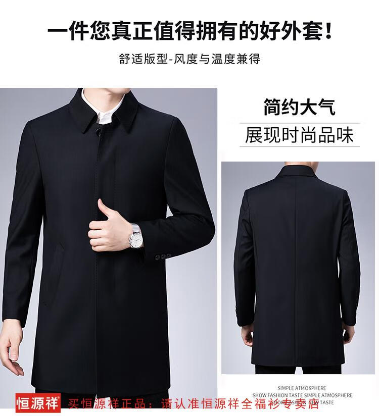 Hengyuanxiang Rompevientos ejecutivo de seda de morera para hombre Chaqueta de abrigo informal de longitud media para papá de mediana edad de invierno para hombre Azul marino KYF-2 Revival M (165) (100-130 Jin Jin equivale a 0,5 kg)