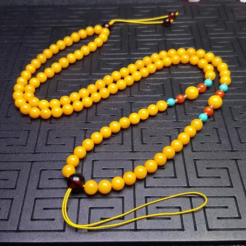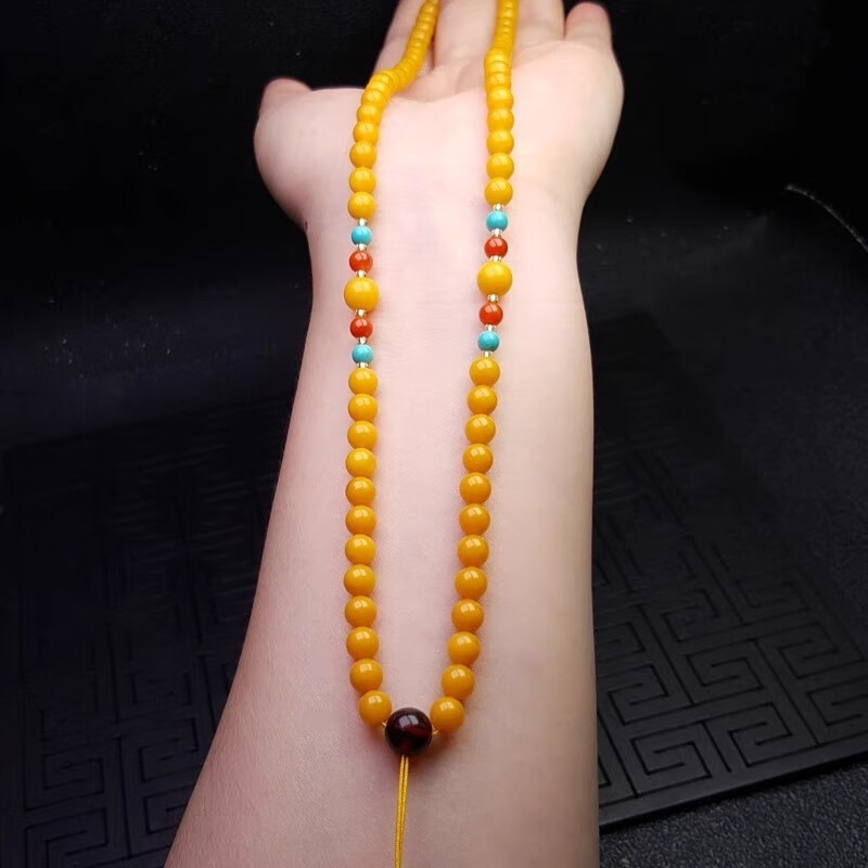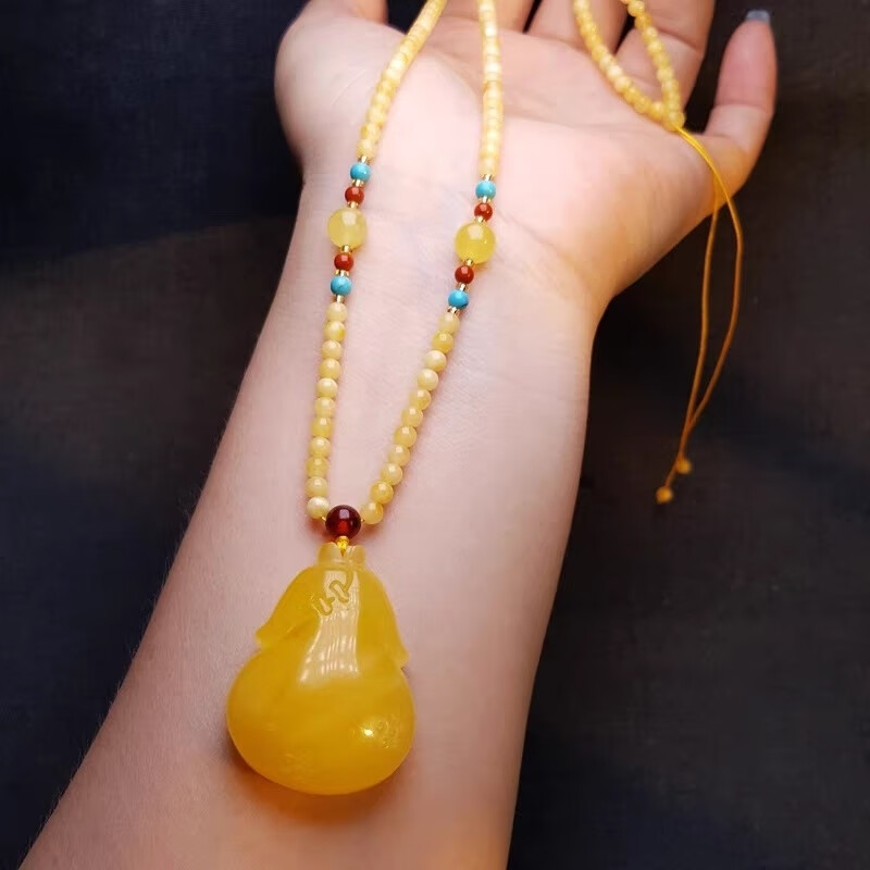 Chengyuanxiang CREORISETIN natural beeswax necklace old beeswax chain amber lanyard beeswax sweater chain new lengthened Russian amber style one pendant chain one