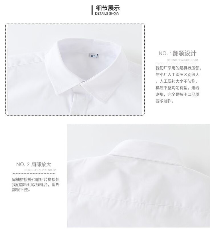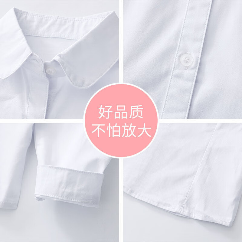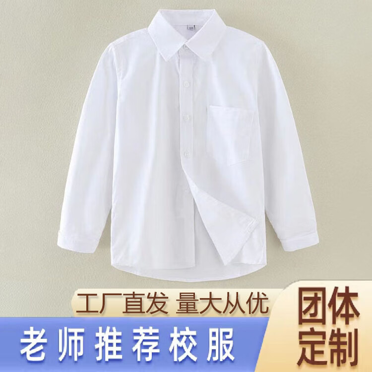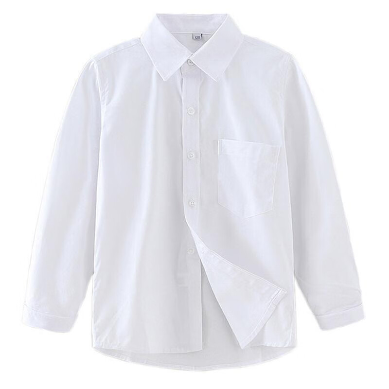 Luo Zhichao children's white shirt boys long-sleeved spring and autumn primary school students short-sleeved school uniforms middle school girls white shirt performance uniforms white pocket long sleeves 150