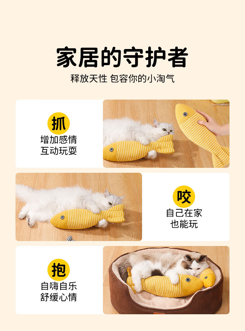 Kitten Diary Cat Toy Self-pleasure Relieve Boredom Cat Mint Simulated Fish Kitten Kitten Funny Stick Kitten Teething Pet Cat Supplies Contains Cat Mint 20cm Yellow Mabu Fish