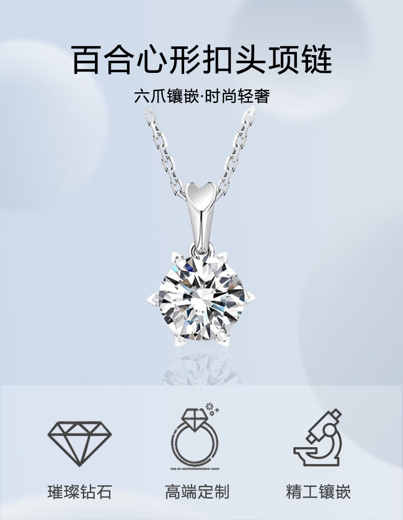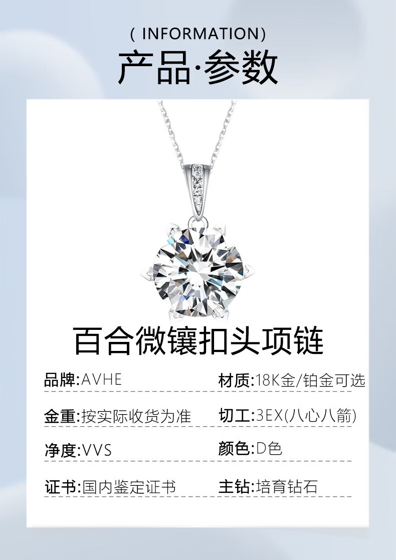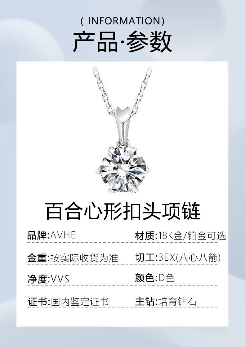 AVHE platinum PT950 gold necklace, genuine cultivated diamond pendant, Lily Snowflake Diamond Necklace, Chinese Valentine's Day gift for women, 2 carat D color diamond-Lily heart-shaped platinum pendant + free silver chain + gift box