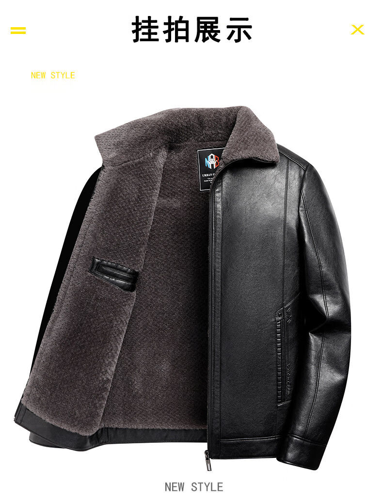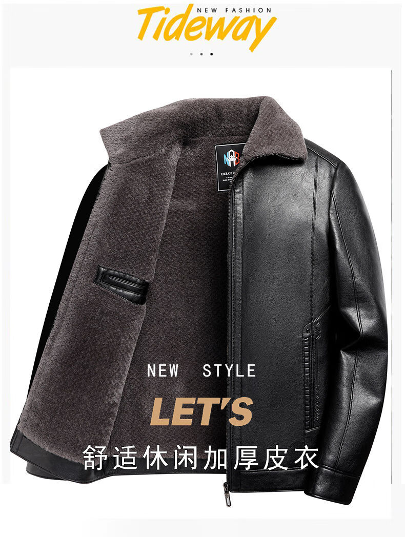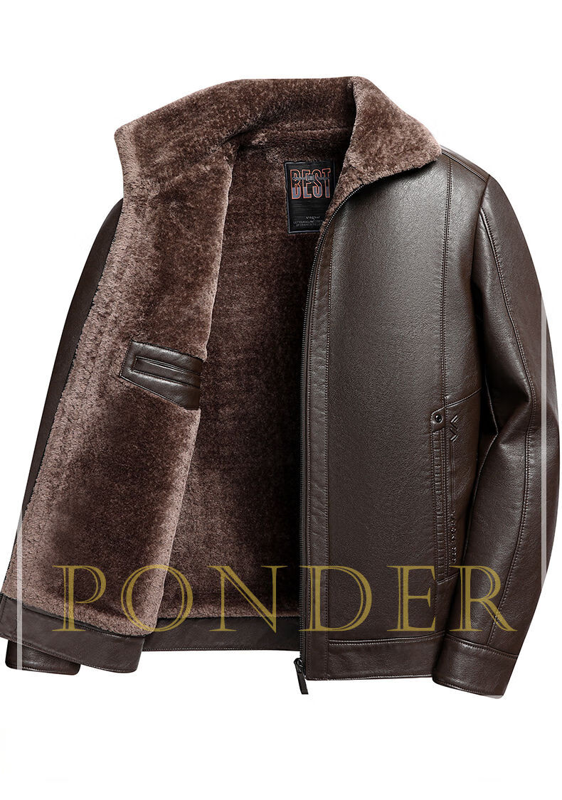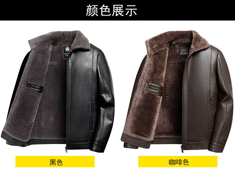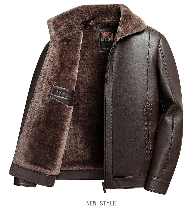Woodpecker (TUCANO) Haining leather jacket for men, middle-aged dad, autumn and winter leather jacket, men's velvet thickened coat, middle-aged and elderly soft leather top, brown 180 (110-130Jin Jin is equal to 0.5 kg)