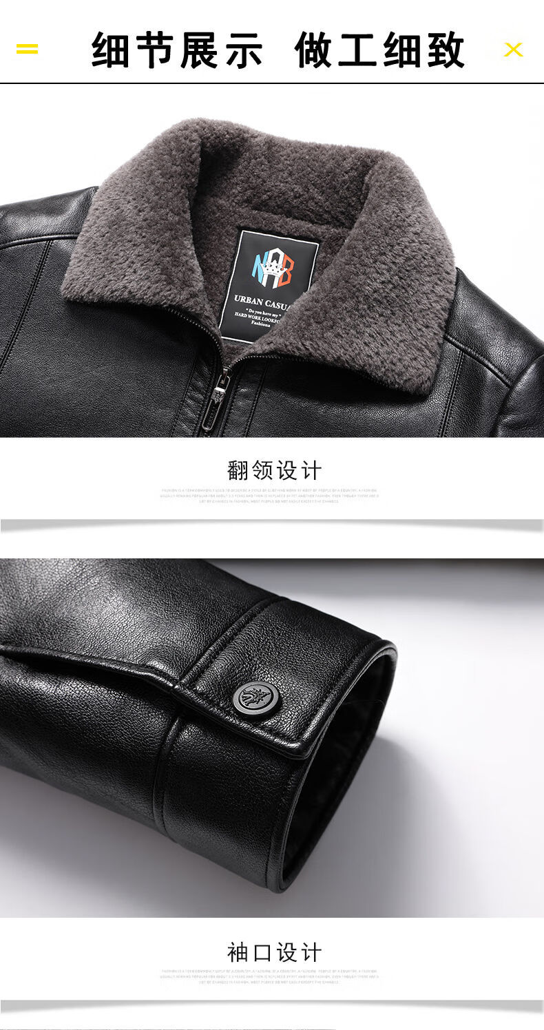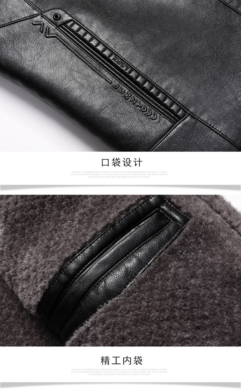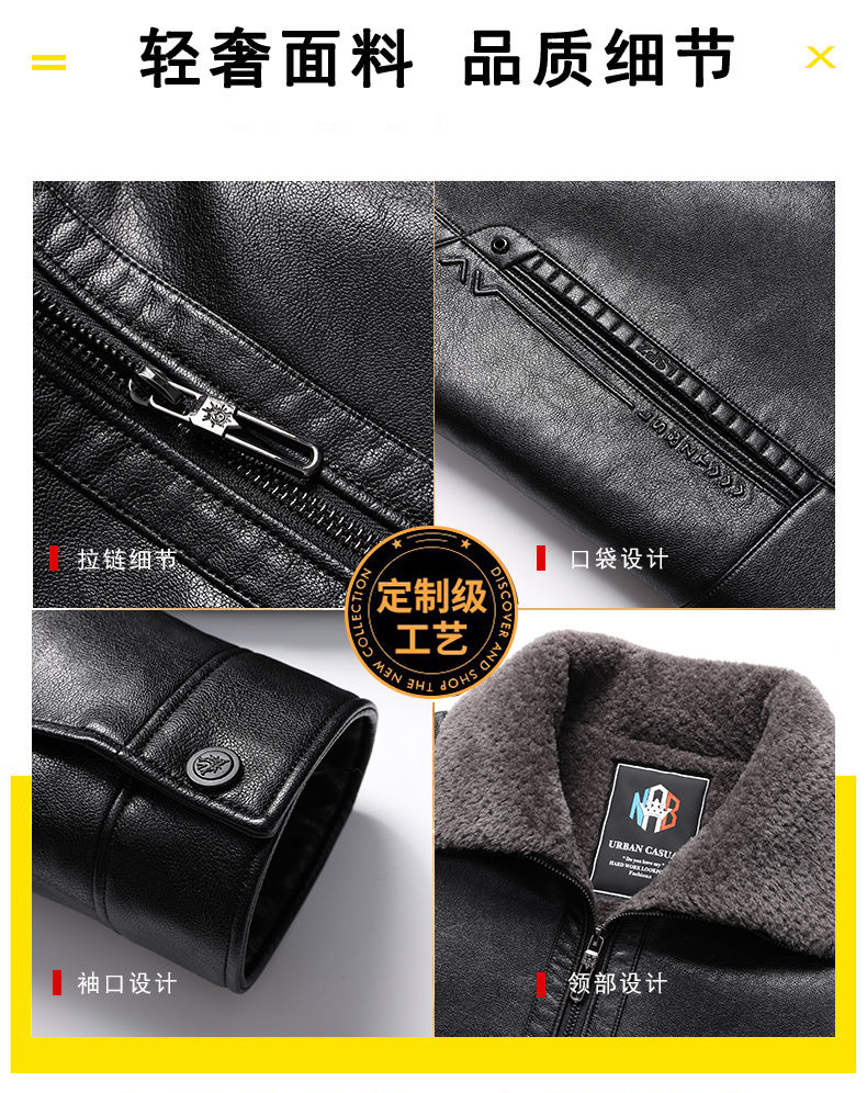 Woodpecker (TUCANO) Haining leather jacket for men, middle-aged dad, autumn and winter leather jacket, men's velvet thickened coat, middle-aged and elderly soft leather top, brown 180 (110-130Jin Jin is equal to 0.5 kg)