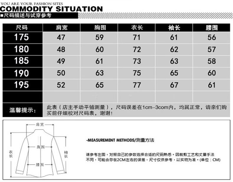 China (cm) 165 / 88-90 170 / 96-98 175 / 108-110 180 / 118-122 185 / 126-130