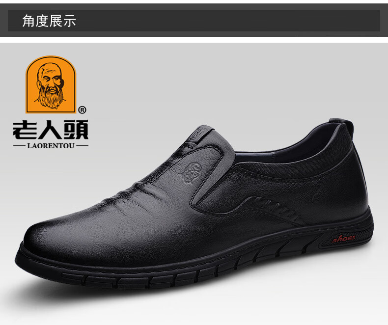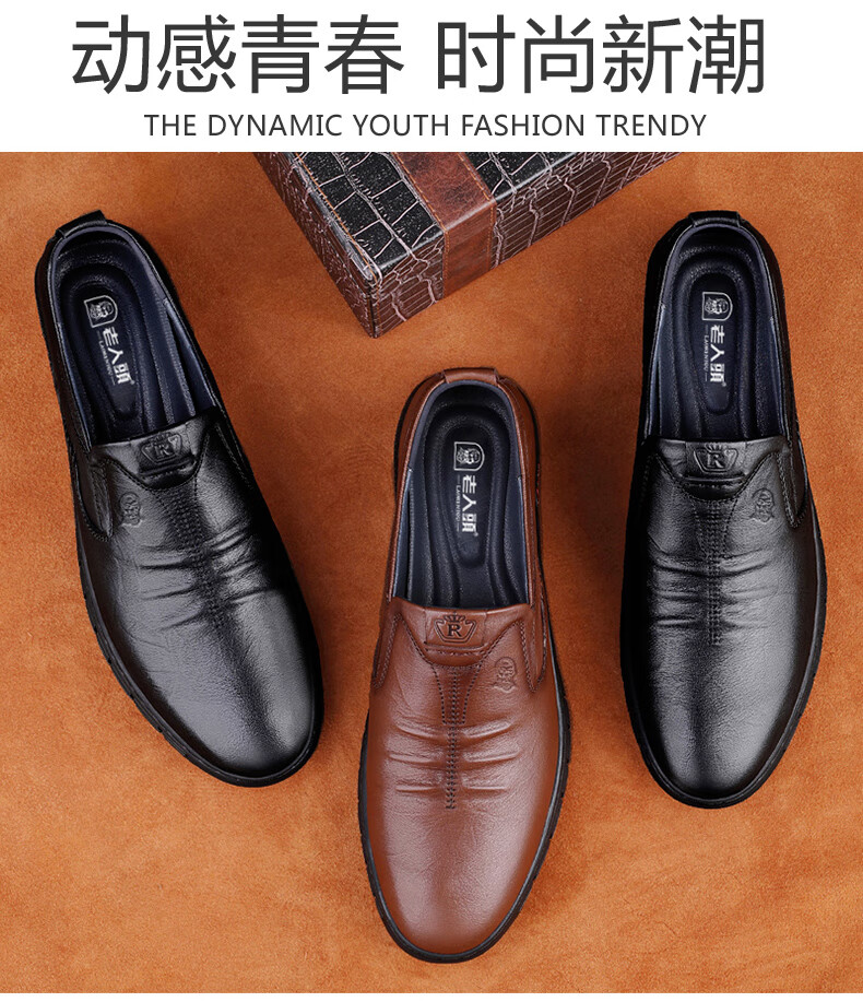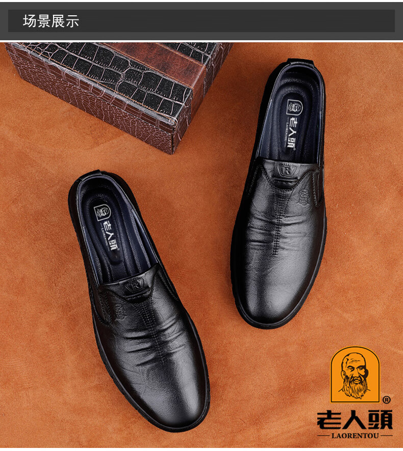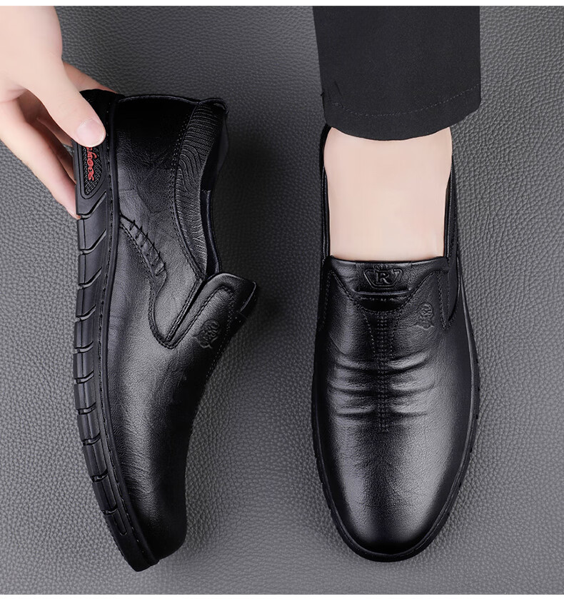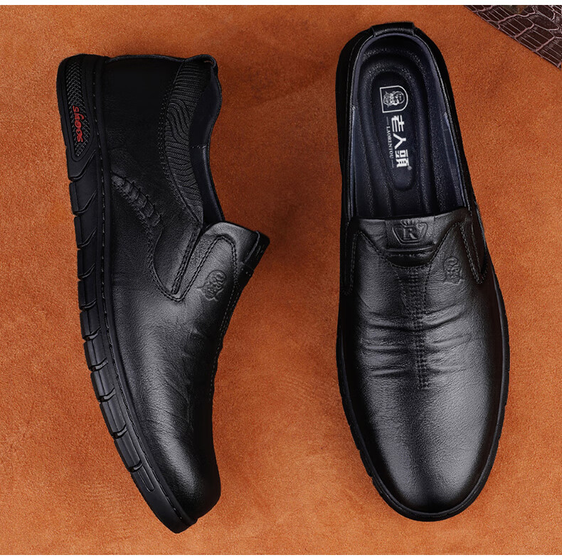 Old Man's Head Men's Business Leather Shoes Soft Leather Soft Sole Bean Shoes Genuine Leather Breathable Slip-on Shoes Light Casual Men's Shoes Black 40 (250mm)